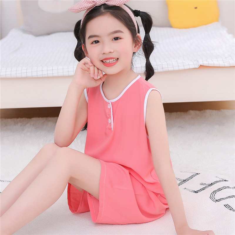 어린이 면 실크 조끼 짧은 세트 아기의 잠옷 에어컨 옷 여자 소년 면 실크 중형 및 대형 어린이 가정 옷 얇은