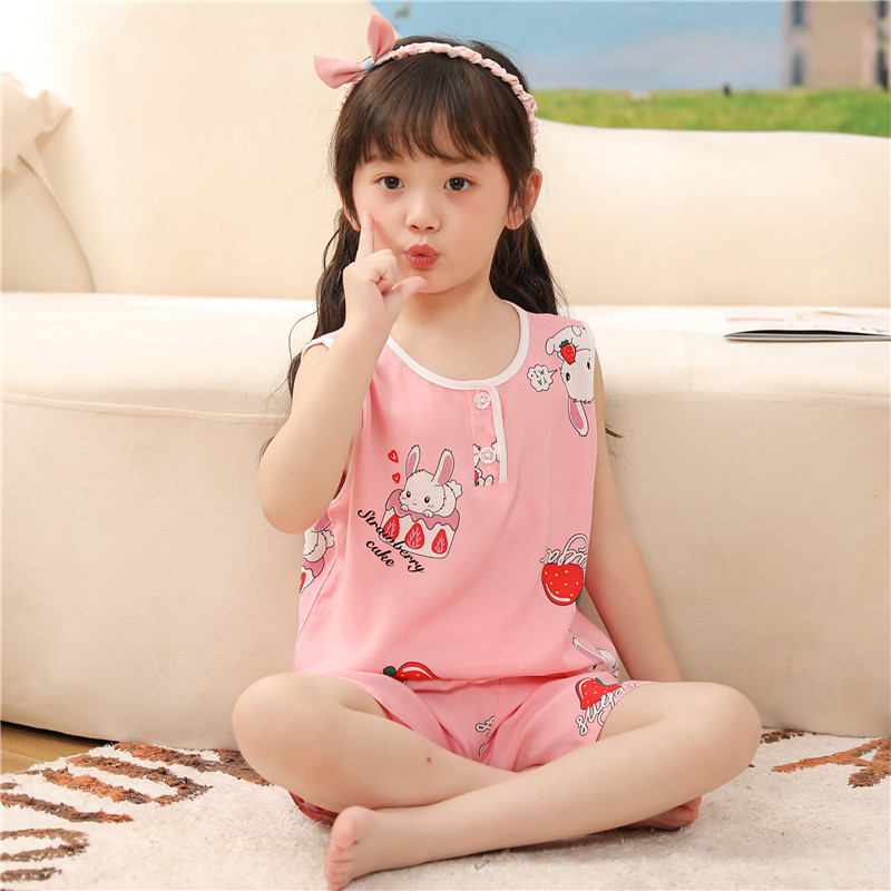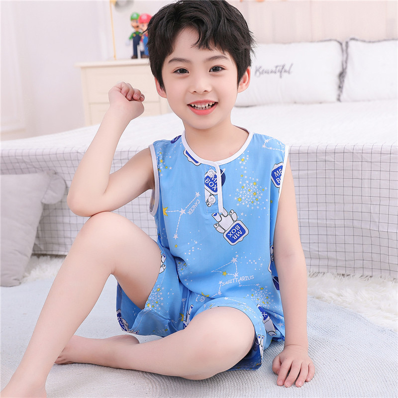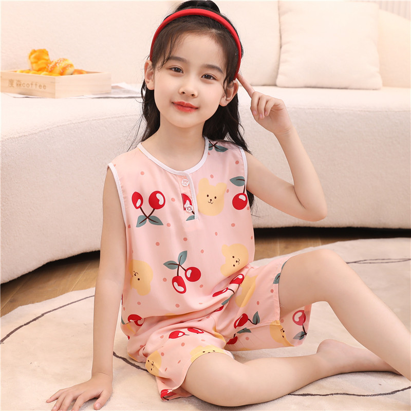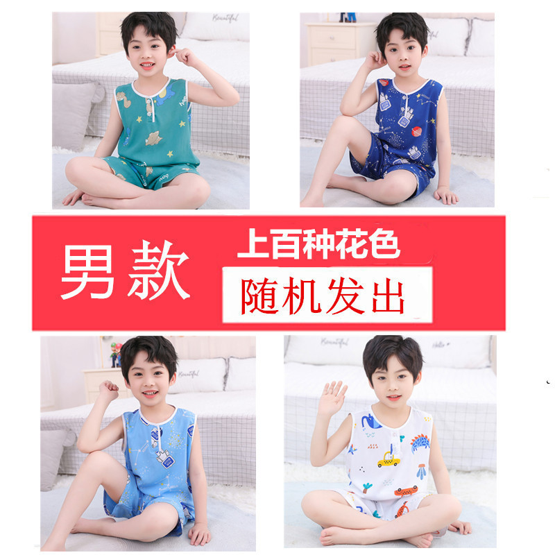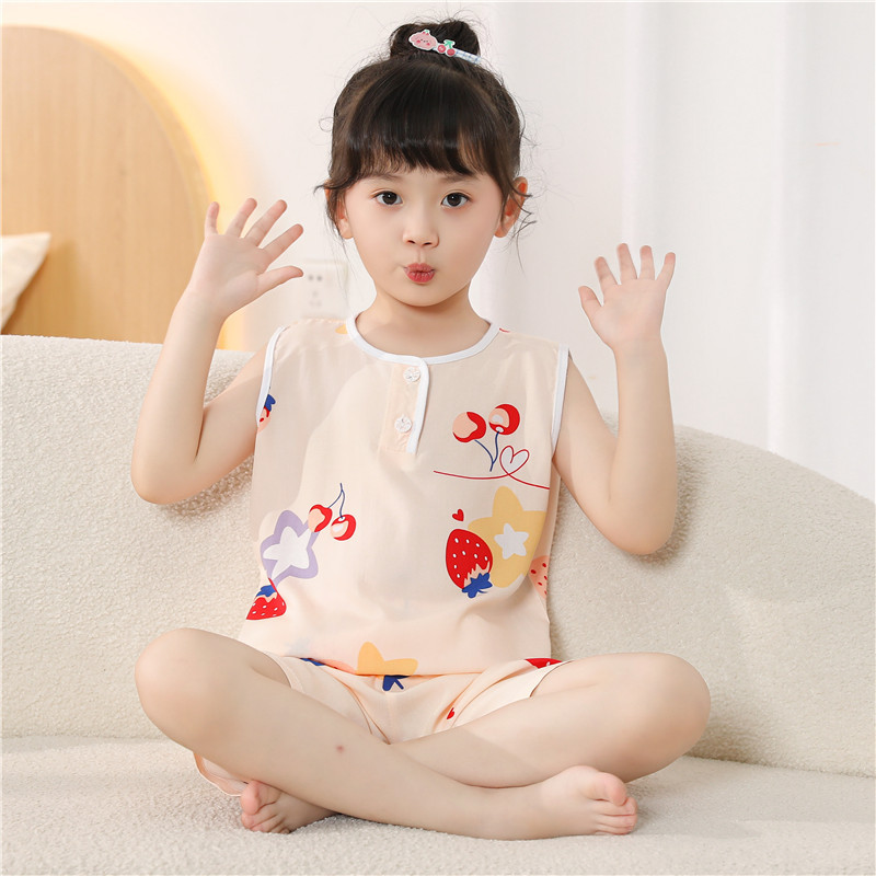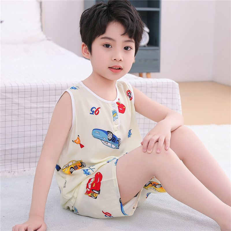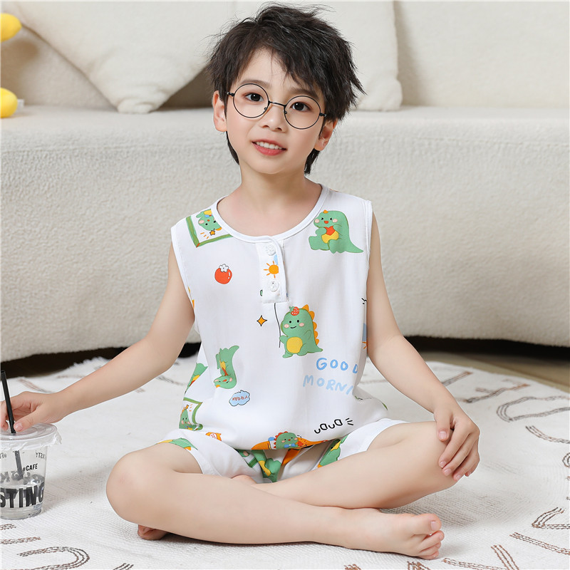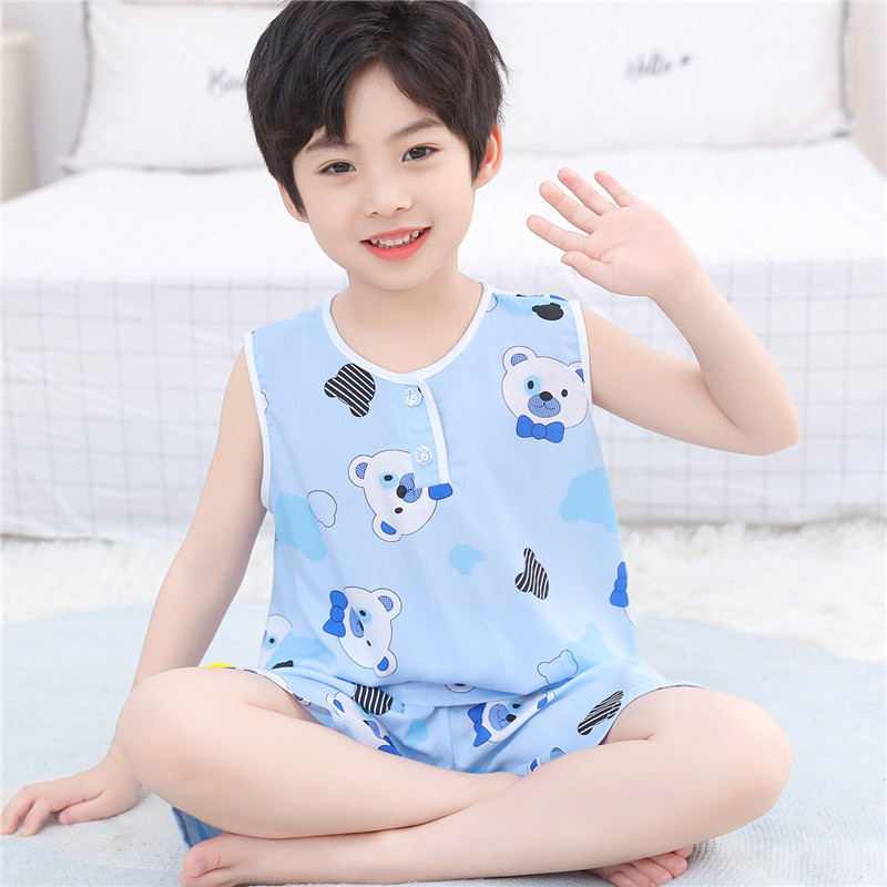 어린이 면 실크 조끼 짧은 세트 아기의 잠옷 에어컨 옷 여자 소년 면 실크 중형 및 대형 어린이 가정 옷 얇은스토어 가기