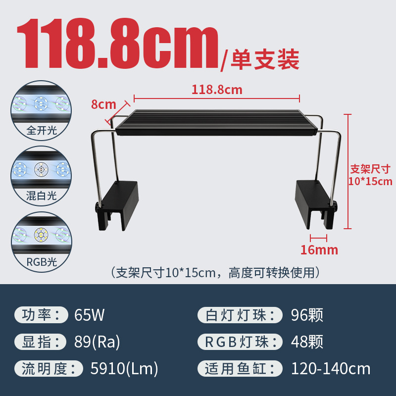 • 알루미늄 합금 118.8cm 전체 스펙트럼 가변 빛 물 잔디 램프 65W
