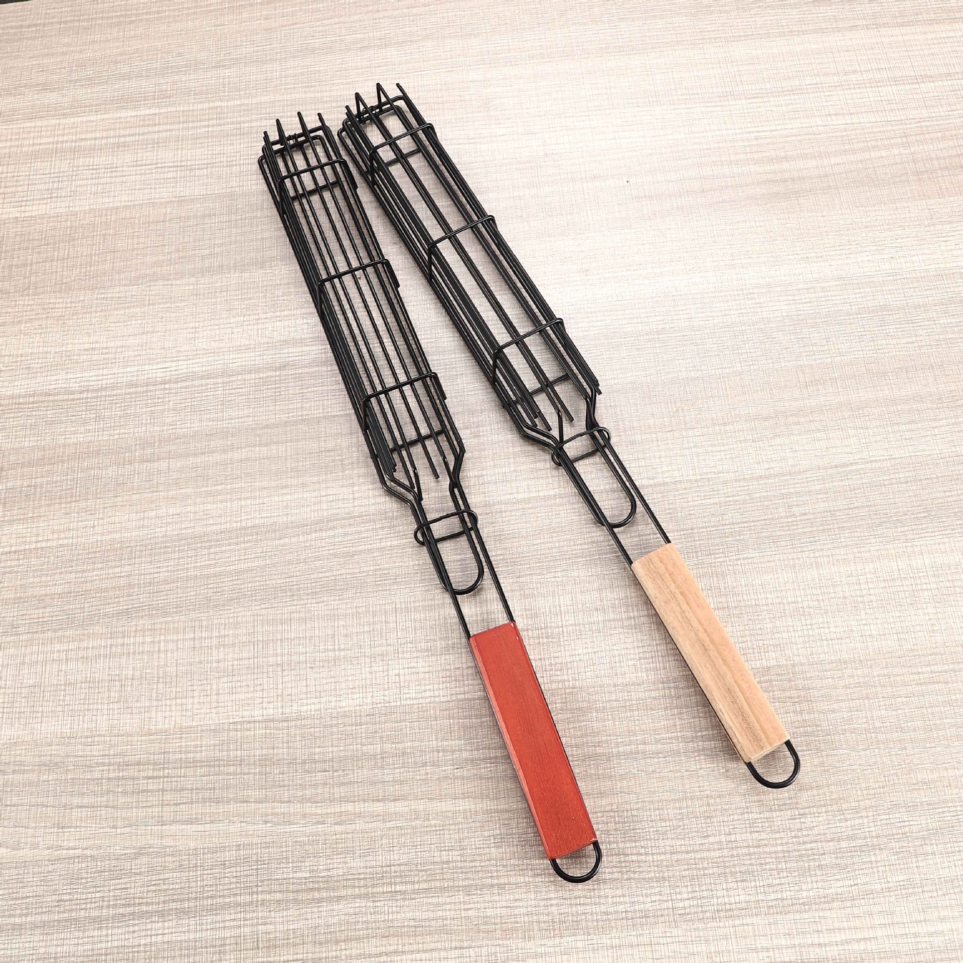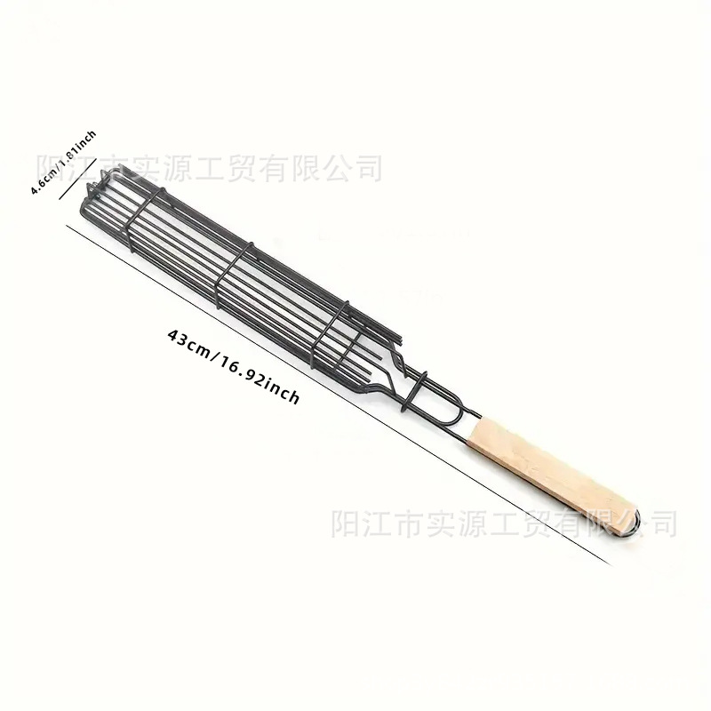 국경 바베큐 나무 손잡이 바베큐 케이지 소시지 바베큐 바구니 나무 손잡이 바베큐 그릴 핫도그 그릴 야외스토어 가기