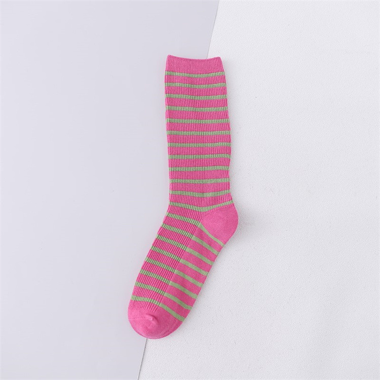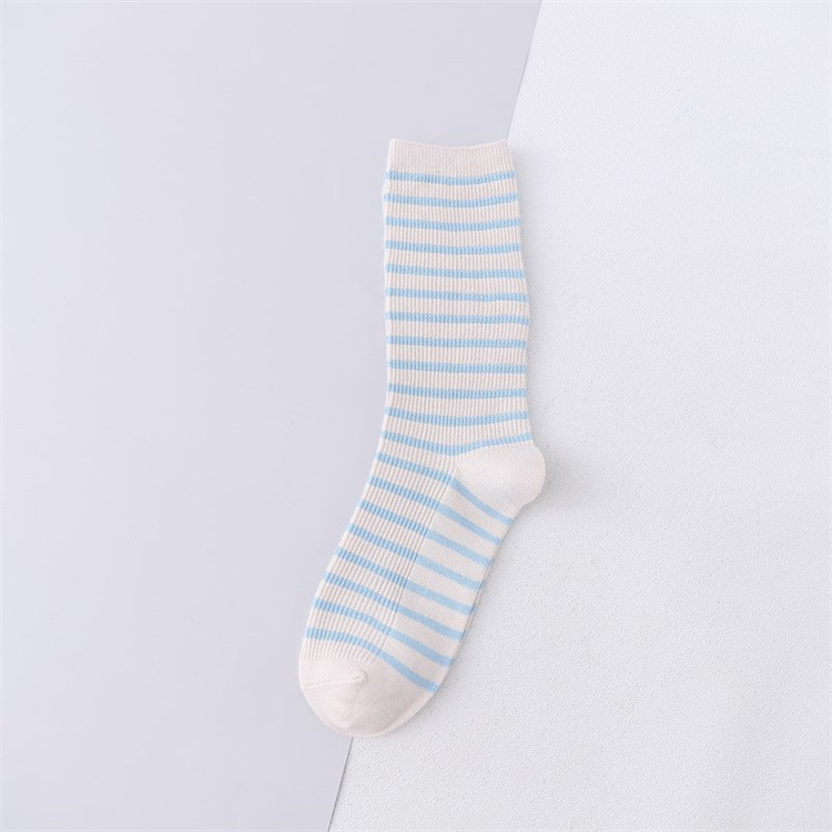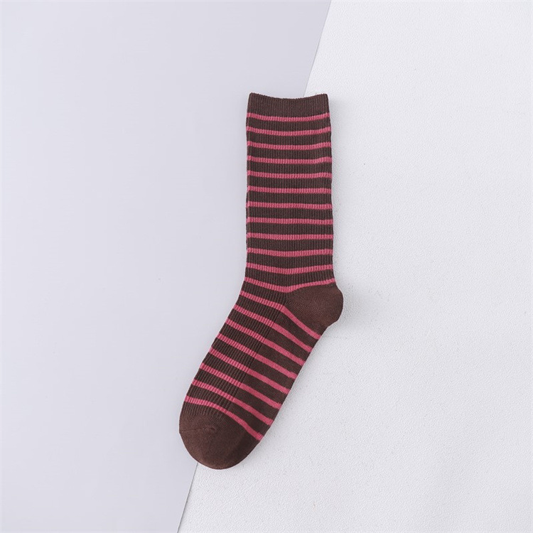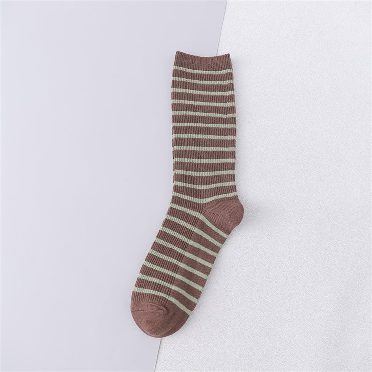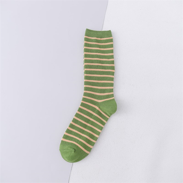 대비 색상 파일 양말 공장 직접 양말 여성용 더블 바늘 빗질면 양말 튜브 일본 소녀 줄무늬 대학 양말