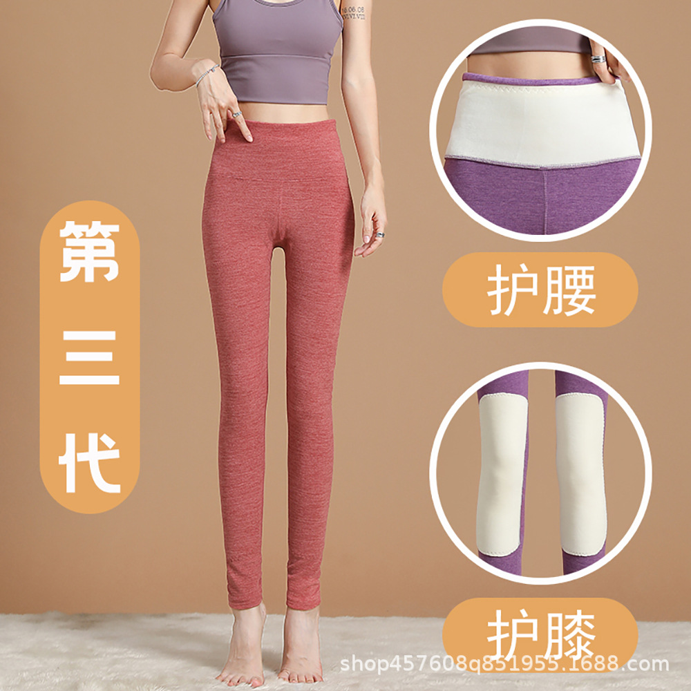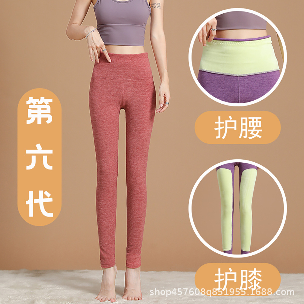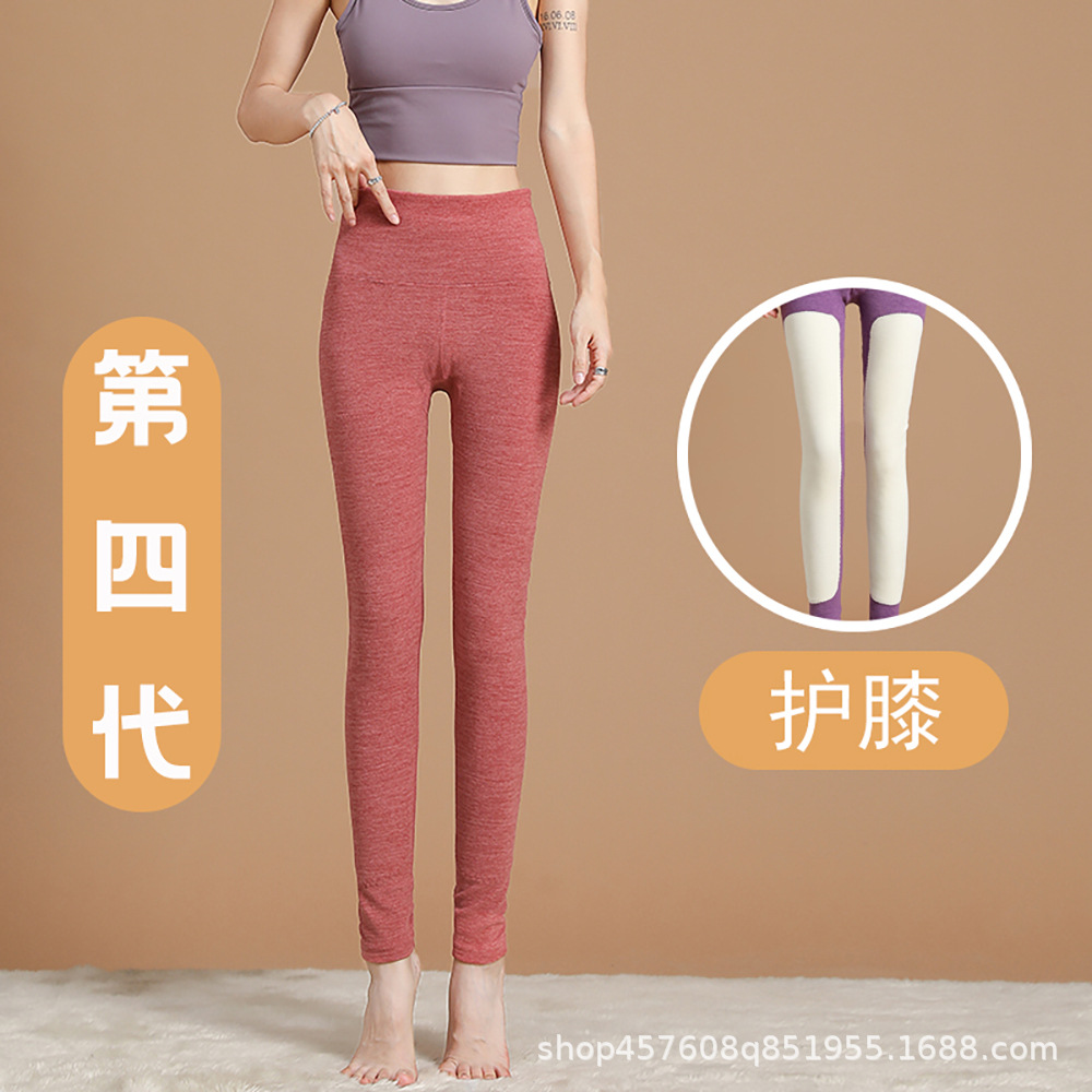 데롱 가을 바지 여성용 무릎 보호 허리 보호 양이온 하이웨이스트 레깅스 무봉제 두꺼운 보온 바지 업그레이드 버전