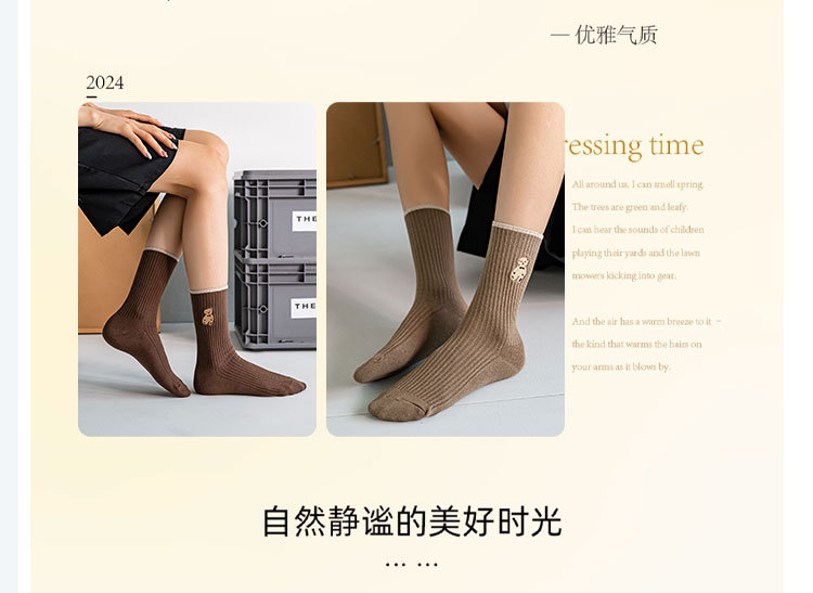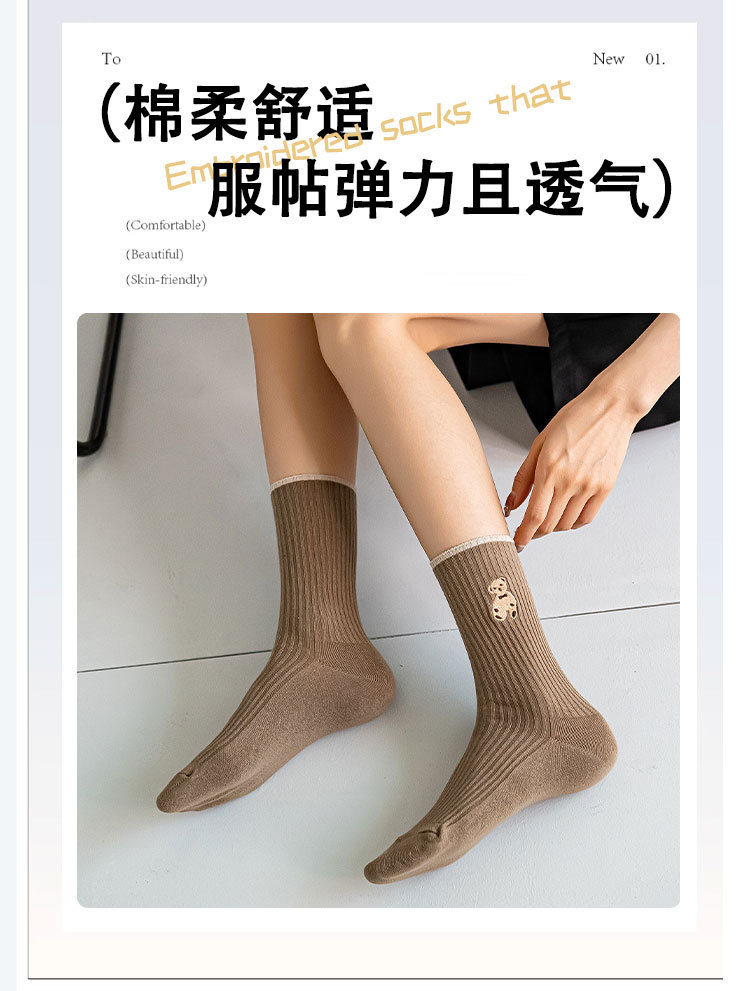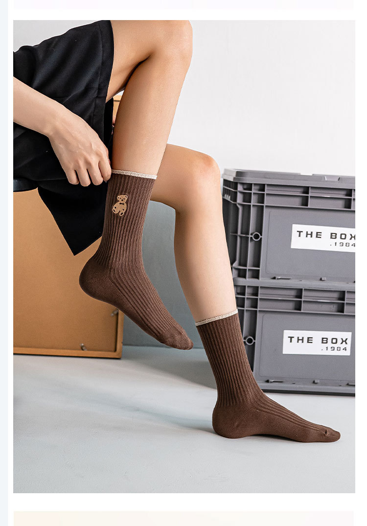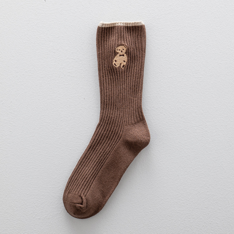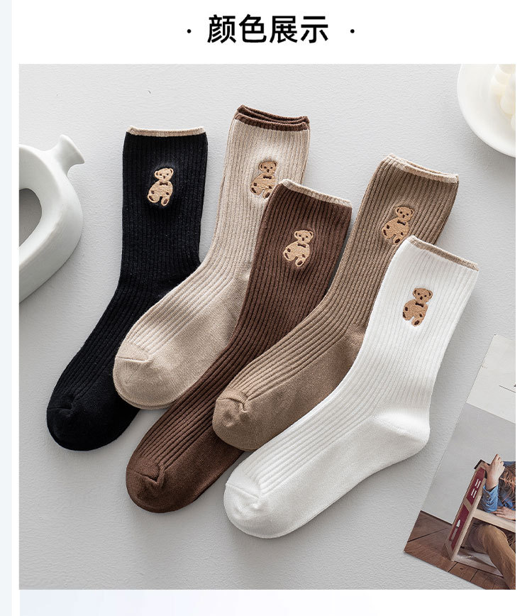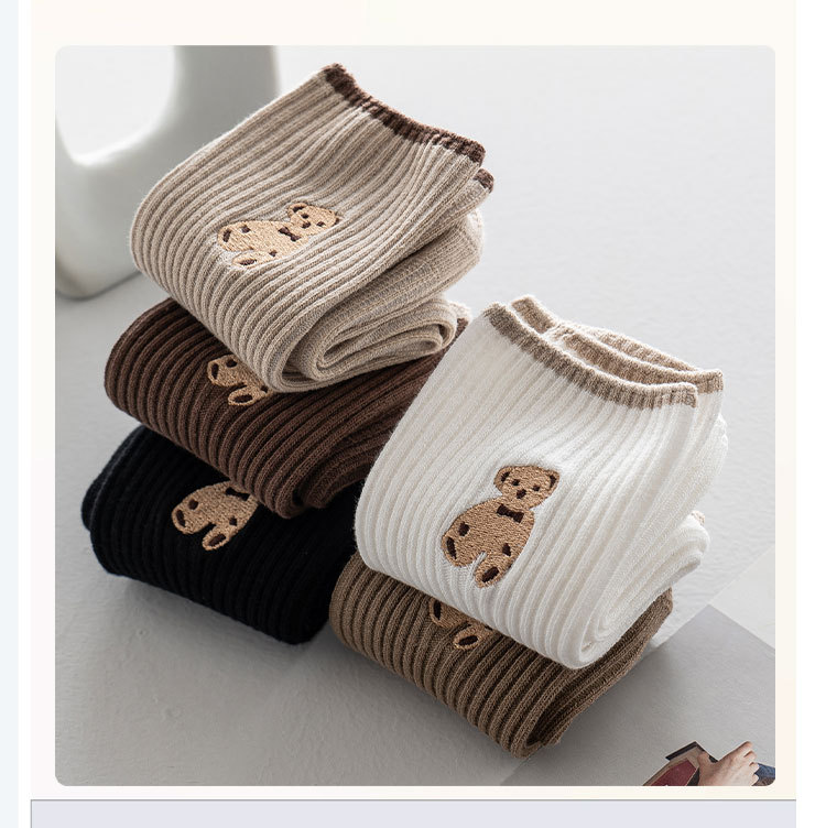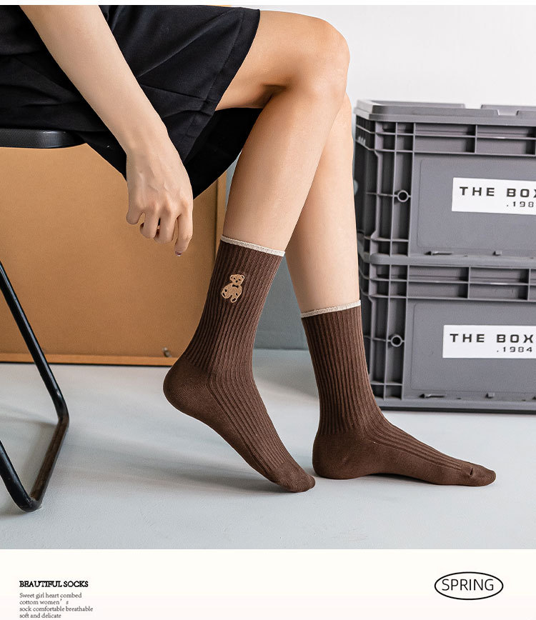 양말 여성 긴 튜브 여성 더미 양말 더블 바늘 자수 곰 가을, 겨울 새로운 여성 트렌드면 양말 흑백 양말스토어 가기