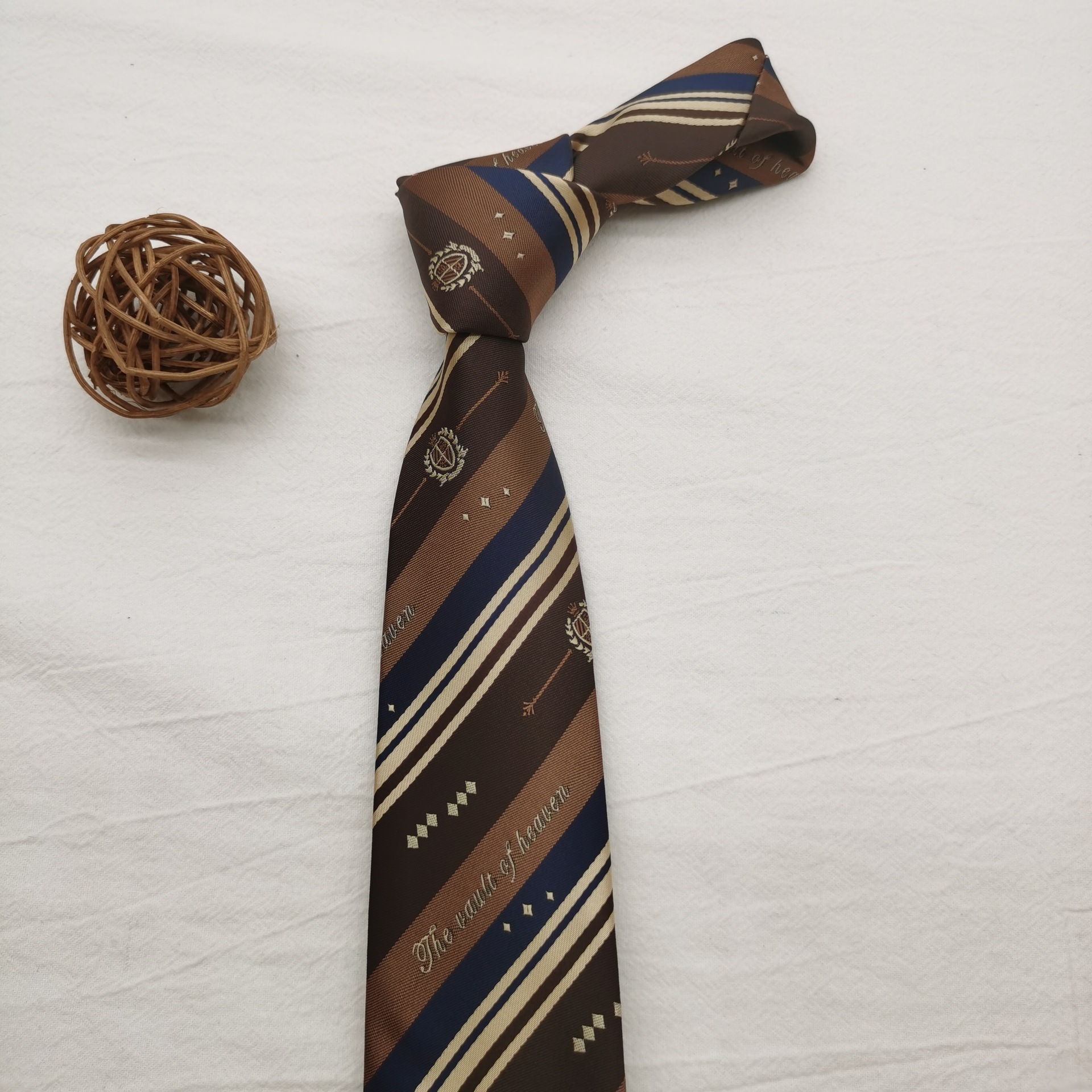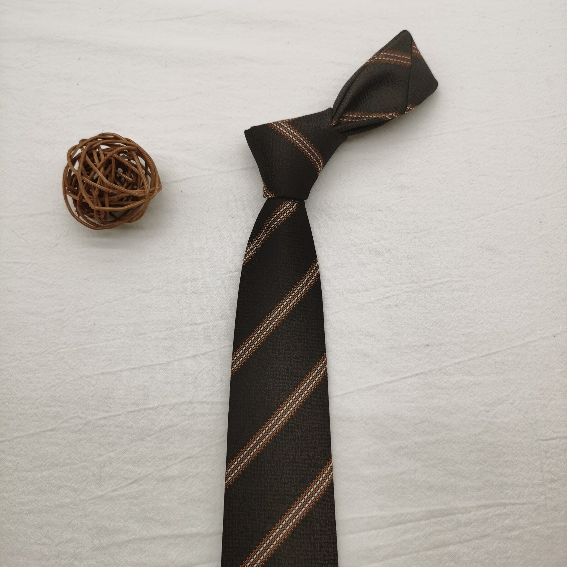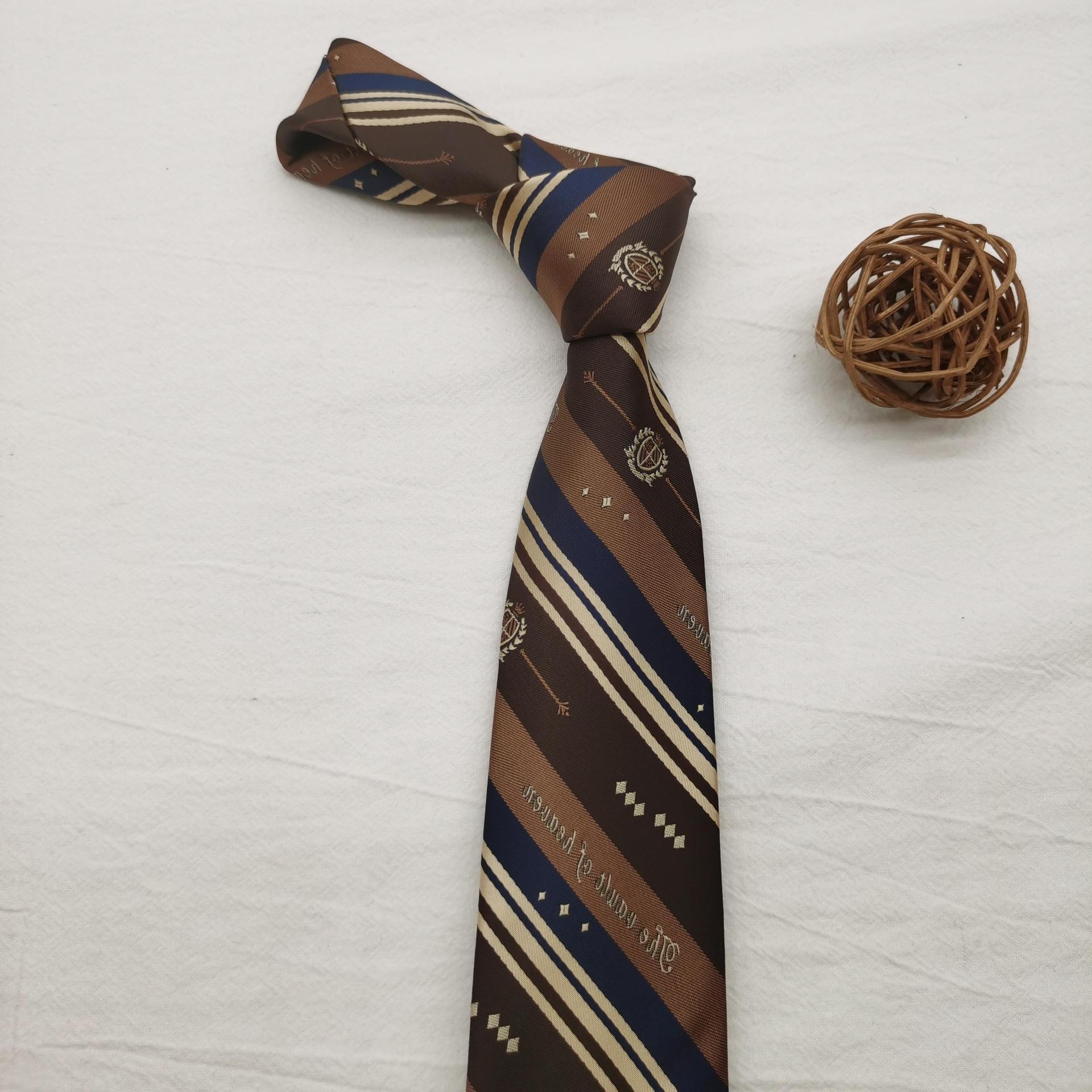 원사 염색 7cm 홍콩 스타일 넥타이 여성의 최신 유행 빈티지 녹색 장식 잘 생긴 커피 줄무늬 수탉 남성스토어 가기