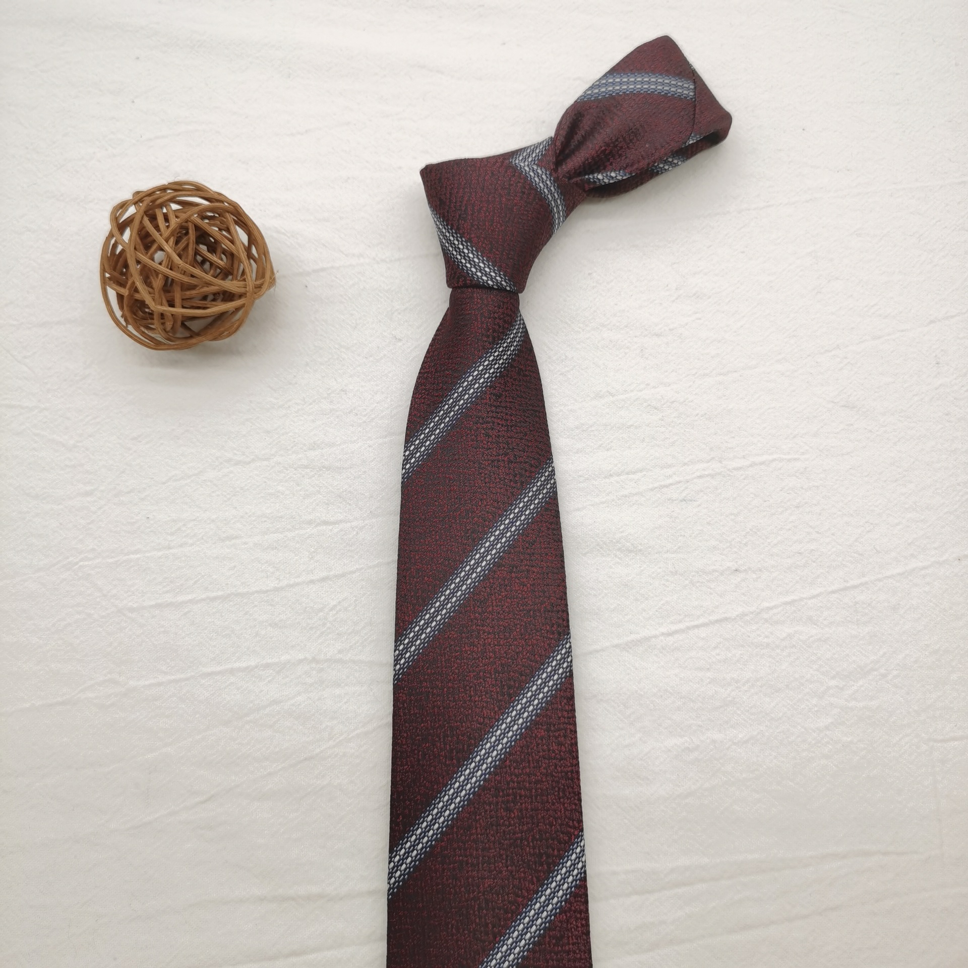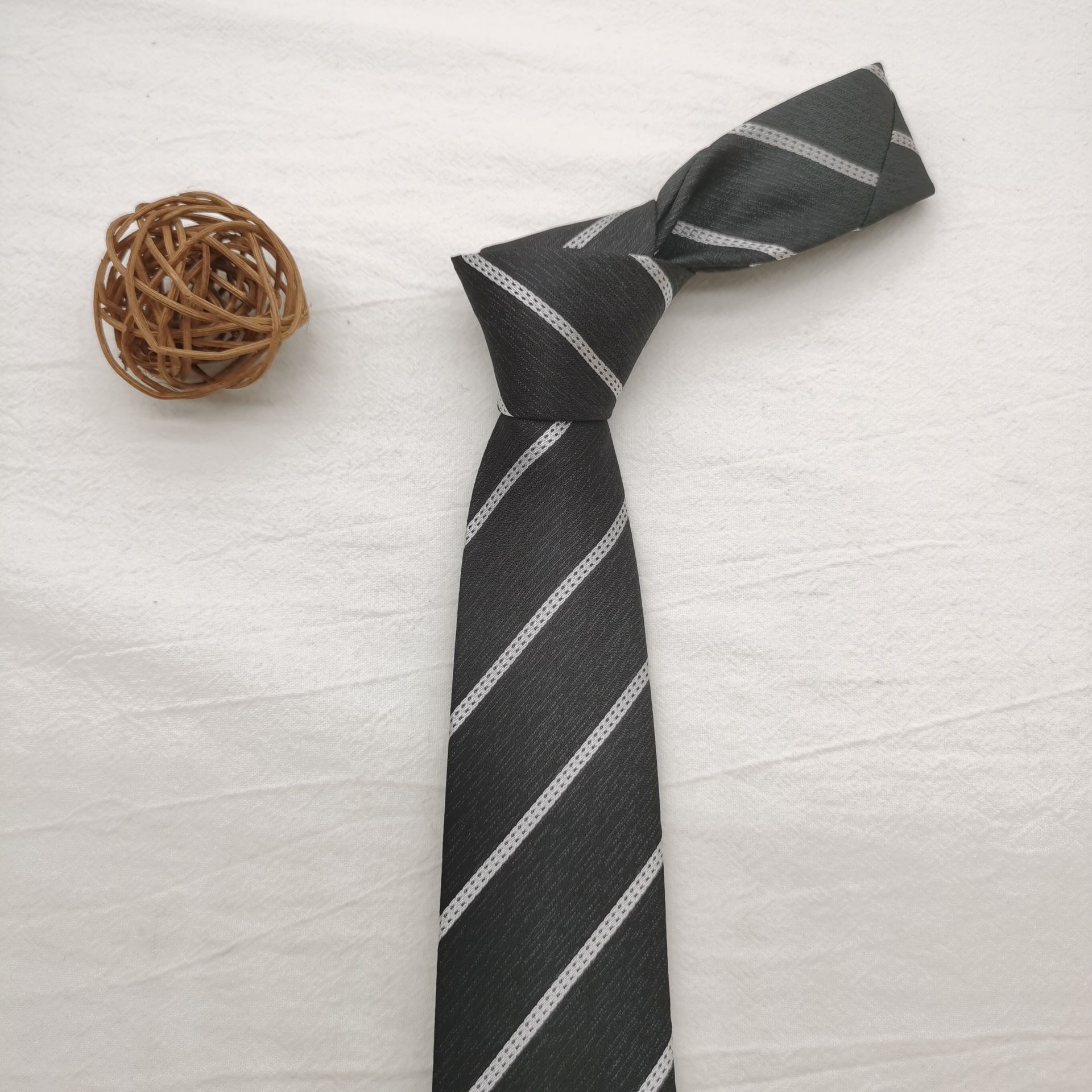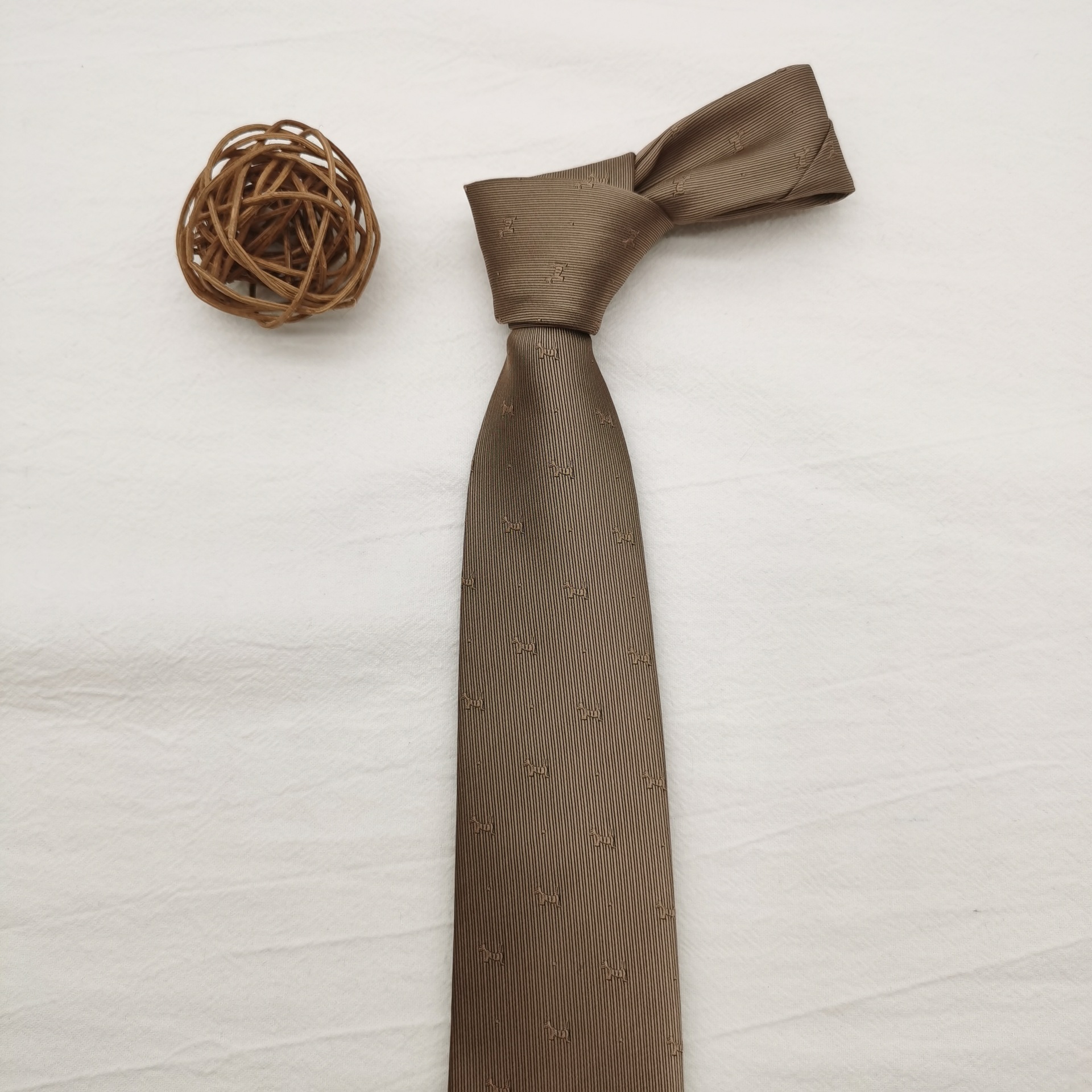 원사 염색 7cm 홍콩 스타일 넥타이 여성의 최신 유행 빈티지 녹색 장식 잘 생긴 커피 줄무늬 수탉 남성스토어 가기