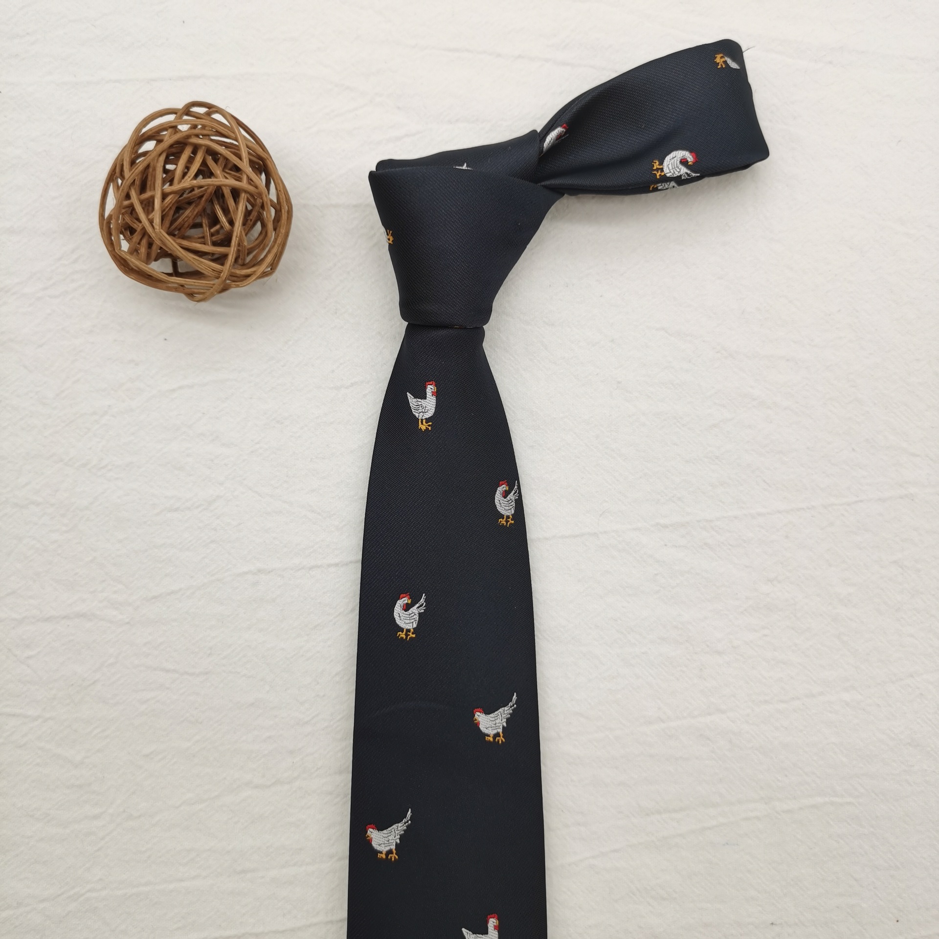 원사 염색 7cm 홍콩 스타일 넥타이 여성의 최신 유행 빈티지 녹색 장식 잘 생긴 커피 줄무늬 수탉 남성