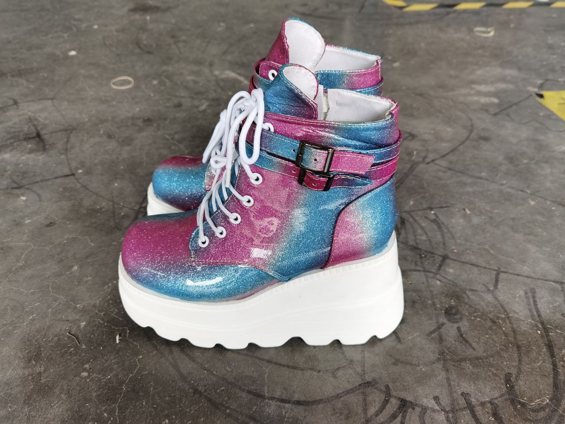 독립 역 2021 새로운 대외 무역 하이힐 여성의 유럽과 미국 다채로운 웨지 사이드 지퍼 부츠 여성의 플러스 사이즈 여성 신발스토어 가기