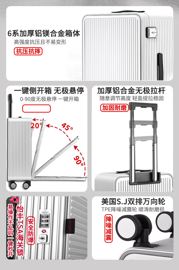 모든 알루미늄 스포츠 에디션 두꺼운 수하물 학생 남성용 대용량 26 인치 알루미늄 마그네슘 합금 여행 트롤리 케이스 여성용 24 인치