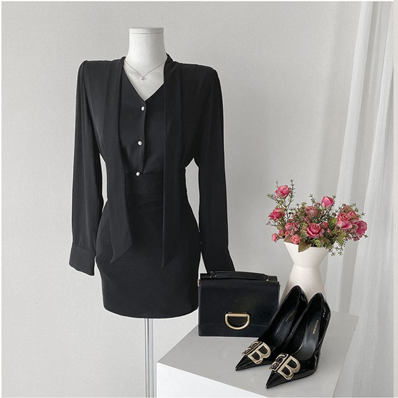 여성을위한 보우 타이 긴팔 셔츠 2025 가을 새로운 디자인 프렌치 탑 루즈한 복고풍 흰색 셔츠