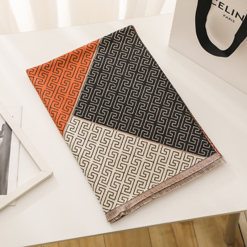 모조 캐시미어 스카프 가을과 겨울 2021 새로운 편지 모양의 격자 두꺼운 따뜻한 긴 숄 양면 에어컨 숄스토어 가기