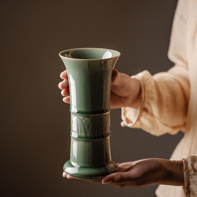 Longquan 매화 녹색 도자기 꽃병 꽃 도자기 문학 공간 홈 장식 컬렉션 장식품 꽃 꽃스토어 가기