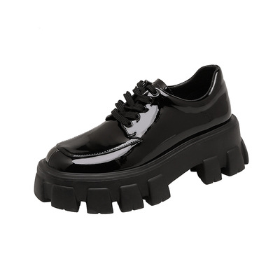 플랫폼 신발 Liu Wen 같은 스타일 높이 증가 작은 가죽 신발 여성용 2023 봄 영국식 에나멜 가죽 로퍼 단층 신발