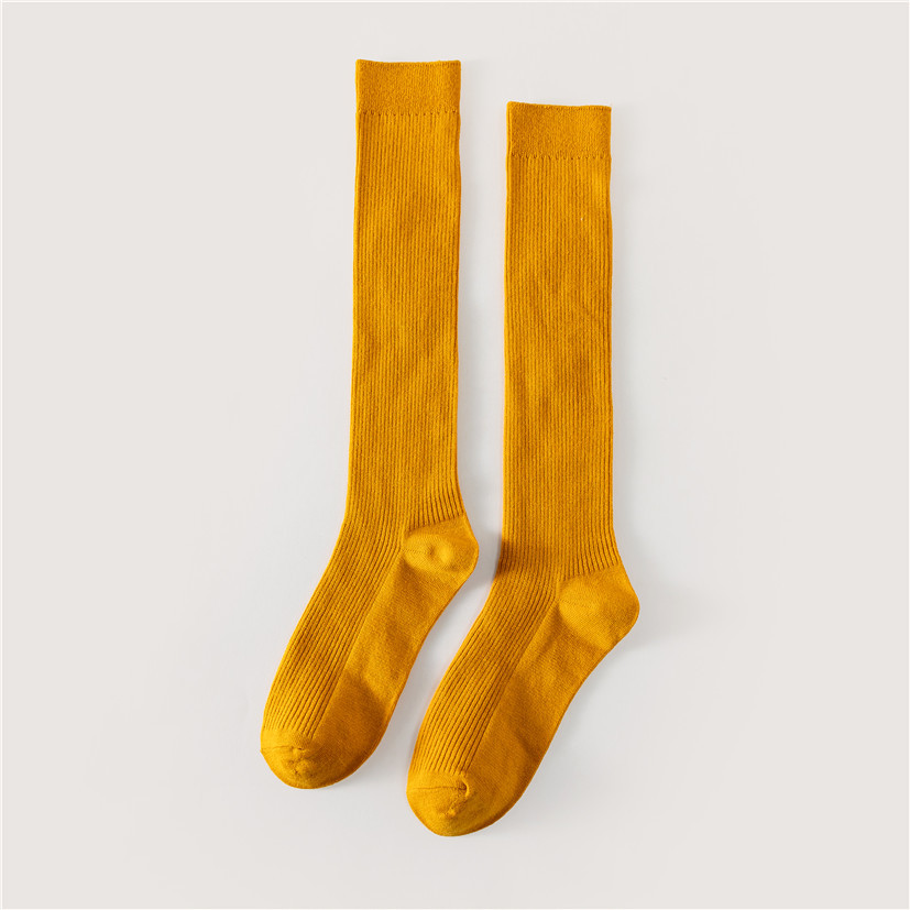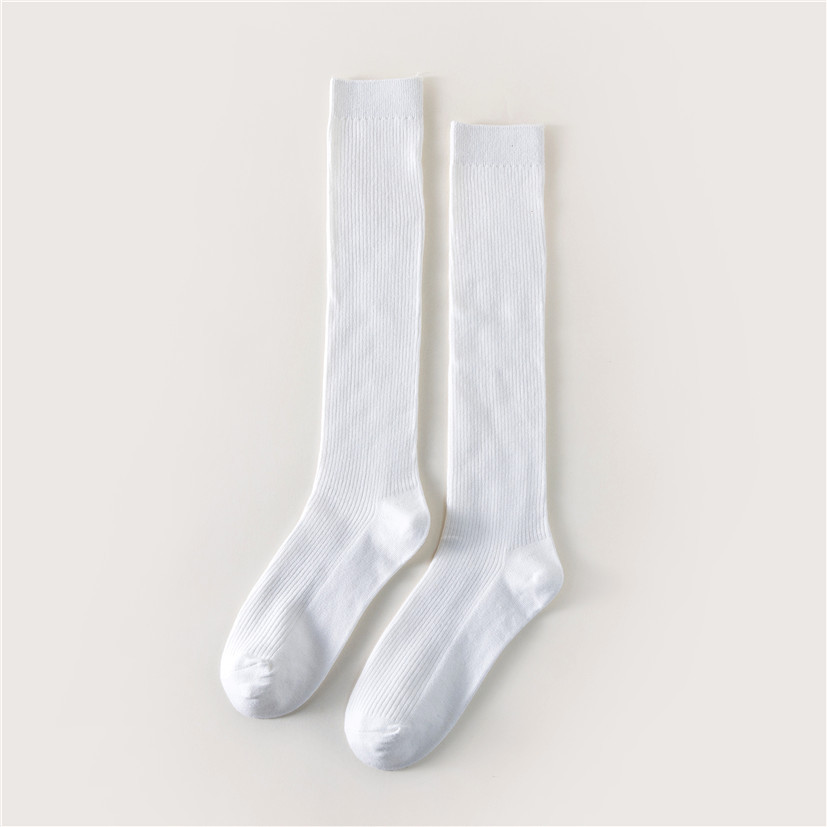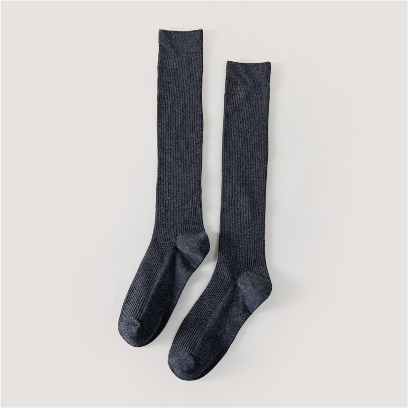 精梳棉 超弹力 纯色竖条纹 小腿袜及膝