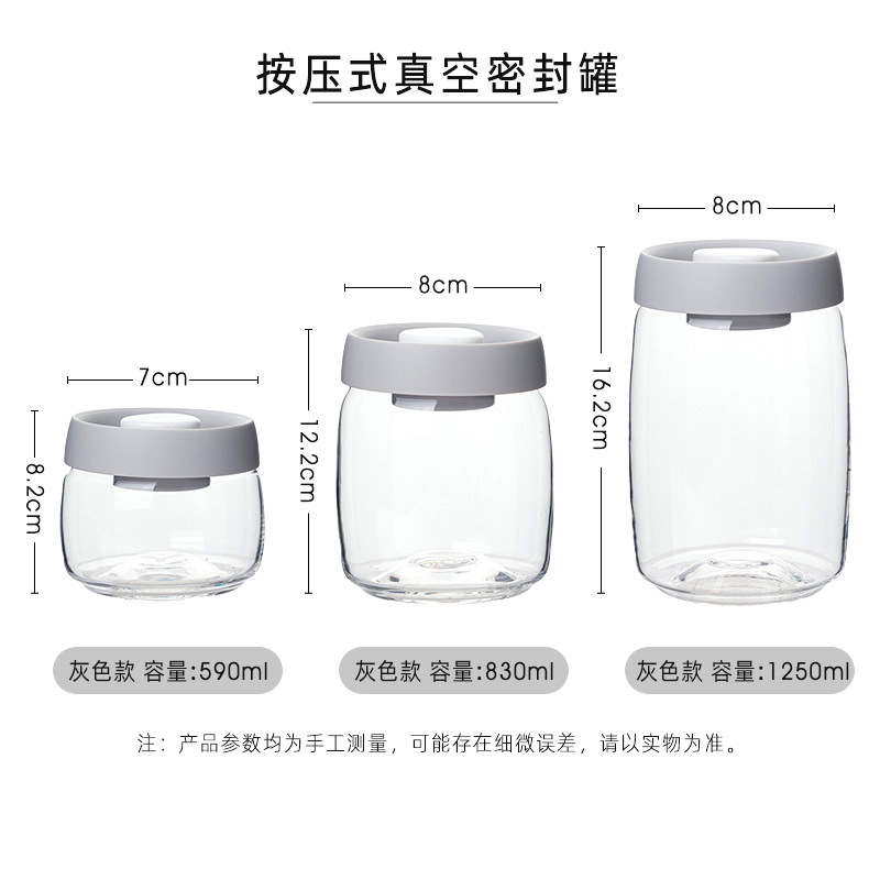 圆形玻璃密封罐厨房真空收纳盒五谷杂粮防潮亚马逊热卖按压式储物罐