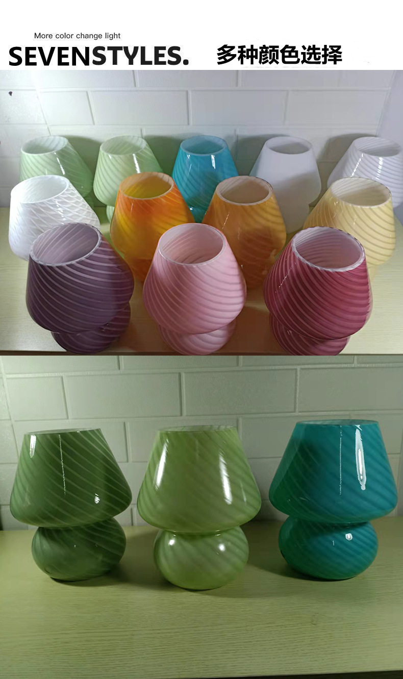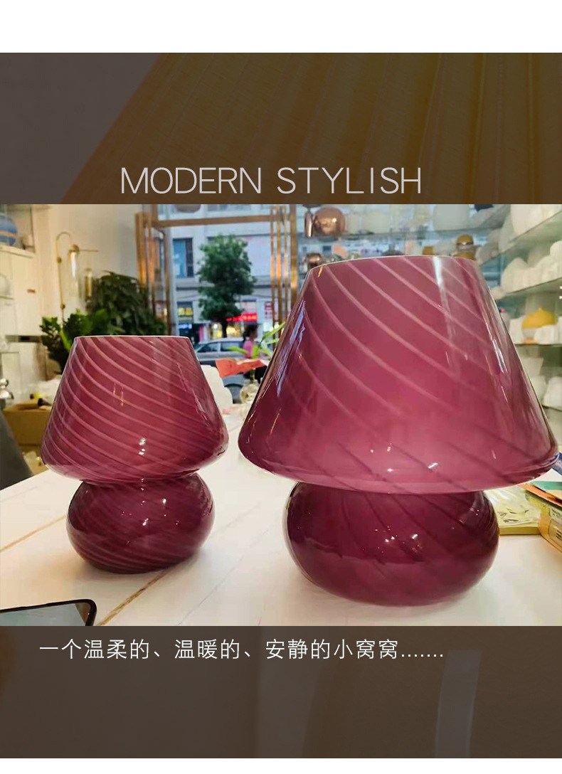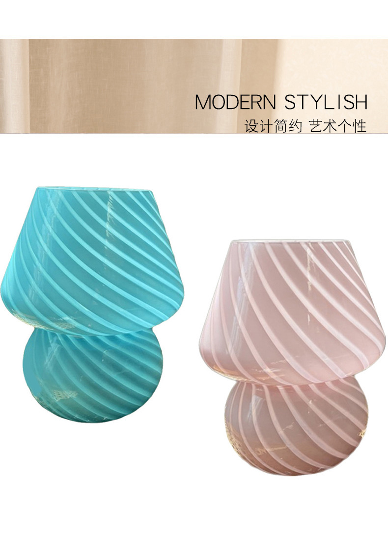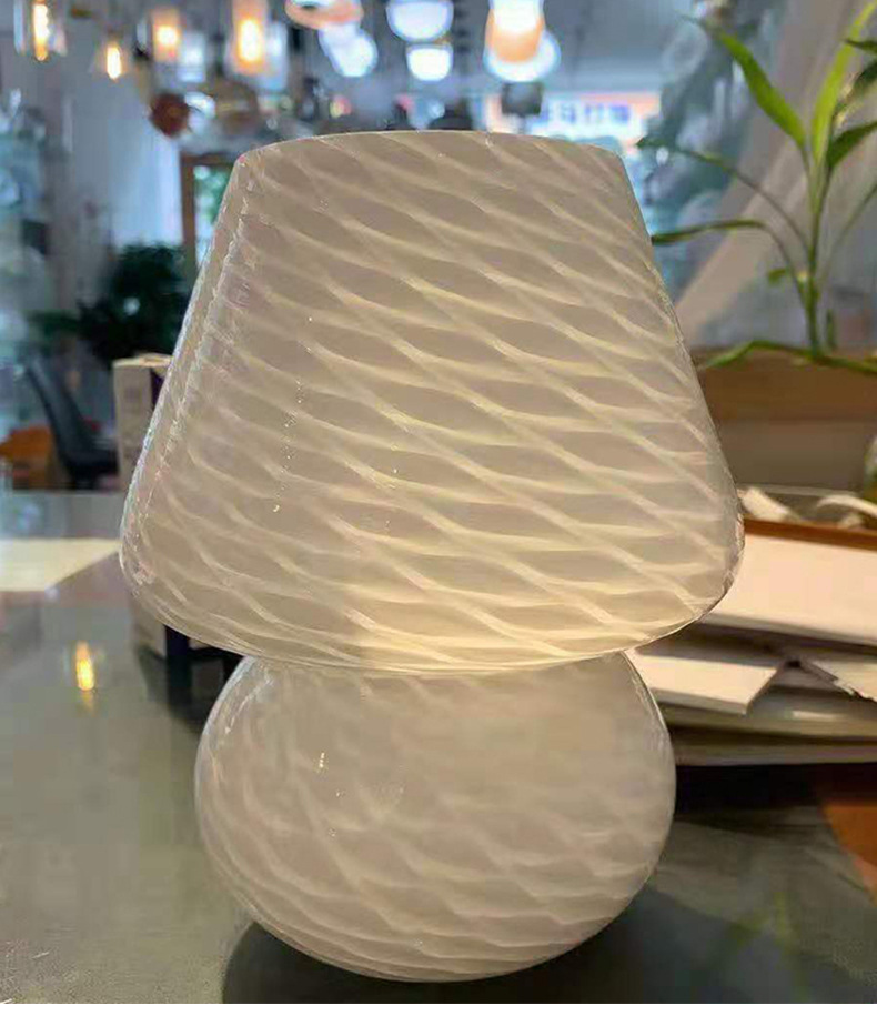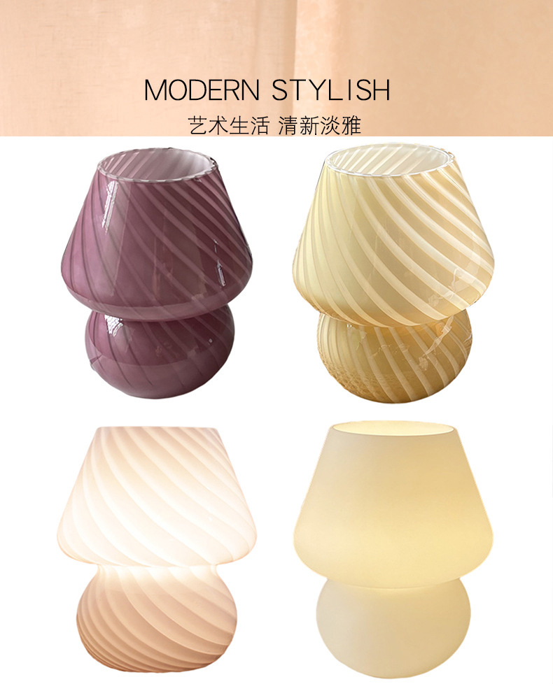 줄무늬 유리 한국식 소녀풍 침실 침대 옆 장식 버섯 모양 테이블 램프 실내 조명 레트로 장식 램프스토어 가기