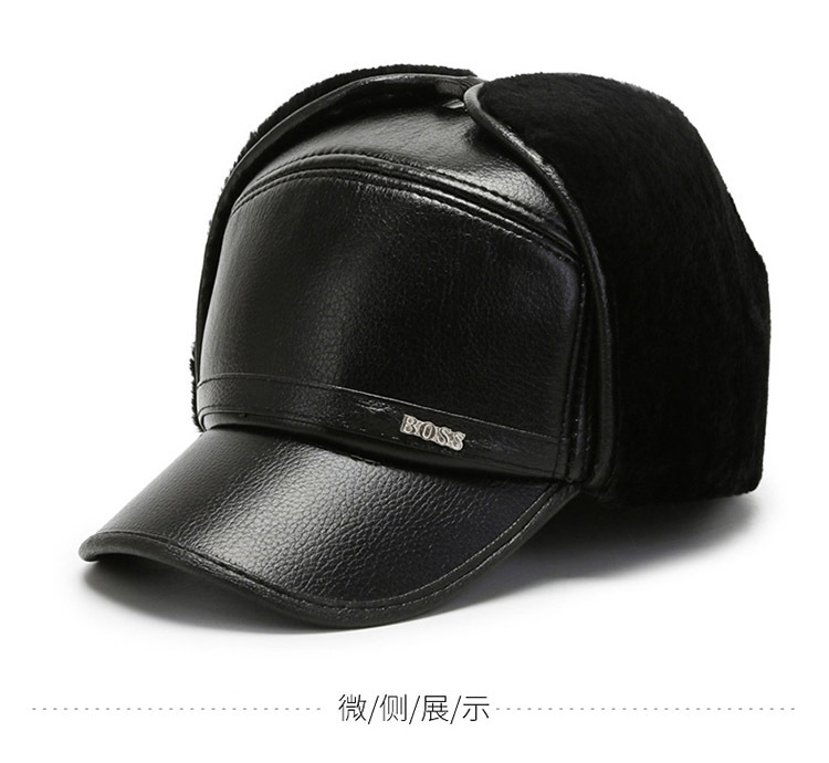 겨울 가죽 모자 해외 무역 도매 새로운 중년 및 노인 야외 기모 따뜻한 귀 보호 면 모자 짧은 처마 레저 Lei Feng 모자스토어 가기