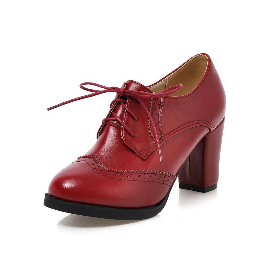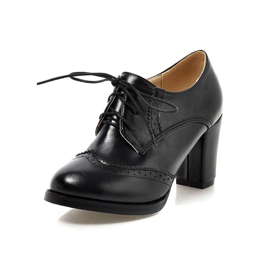 청키 힐 플러스 사이즈 빈티지 브록 싱글 레이어 신발 여성 신발 오일 가죽 5099스토어 가기