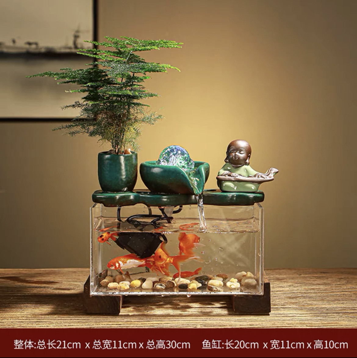 창조적 인 물 장식품 유리 작은 물고기 탱크 행운의 풍수 바퀴 가정 장식 풍경 가정 오프닝 선물