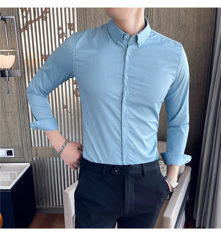 긴팔 셔츠 남자의 4 계절 바 웨이터 질감 셔츠 슬림 플러스 사이즈 한국 셔츠 의류 도매스토어 가기