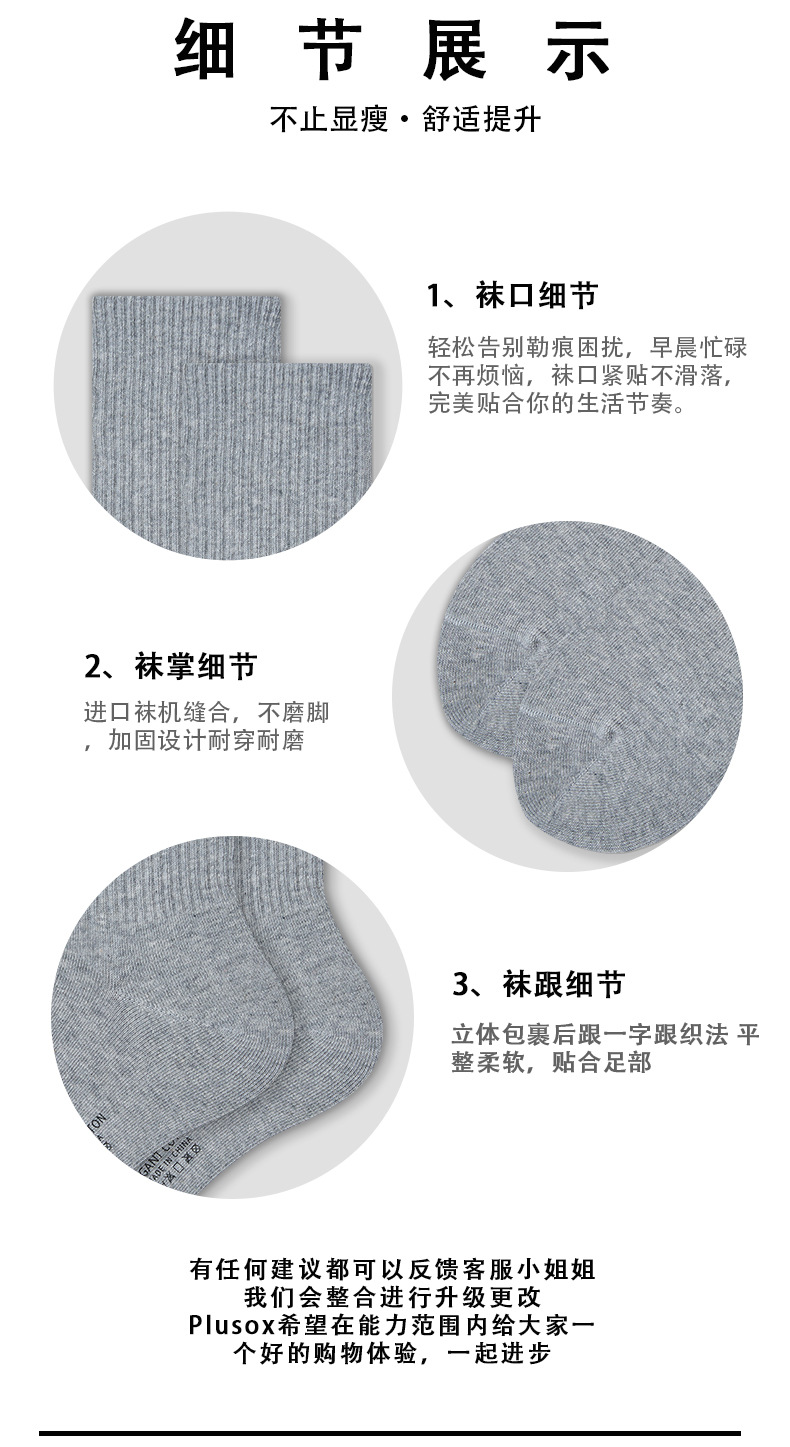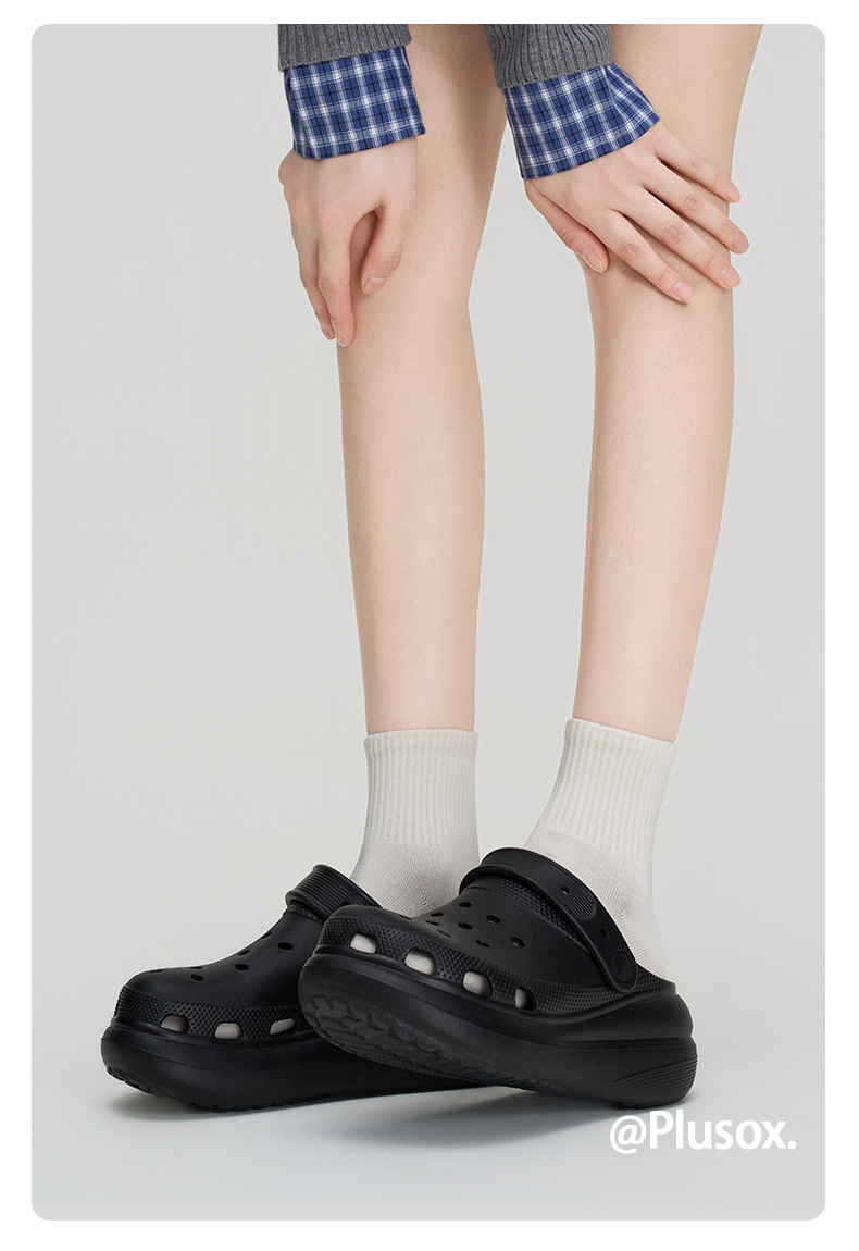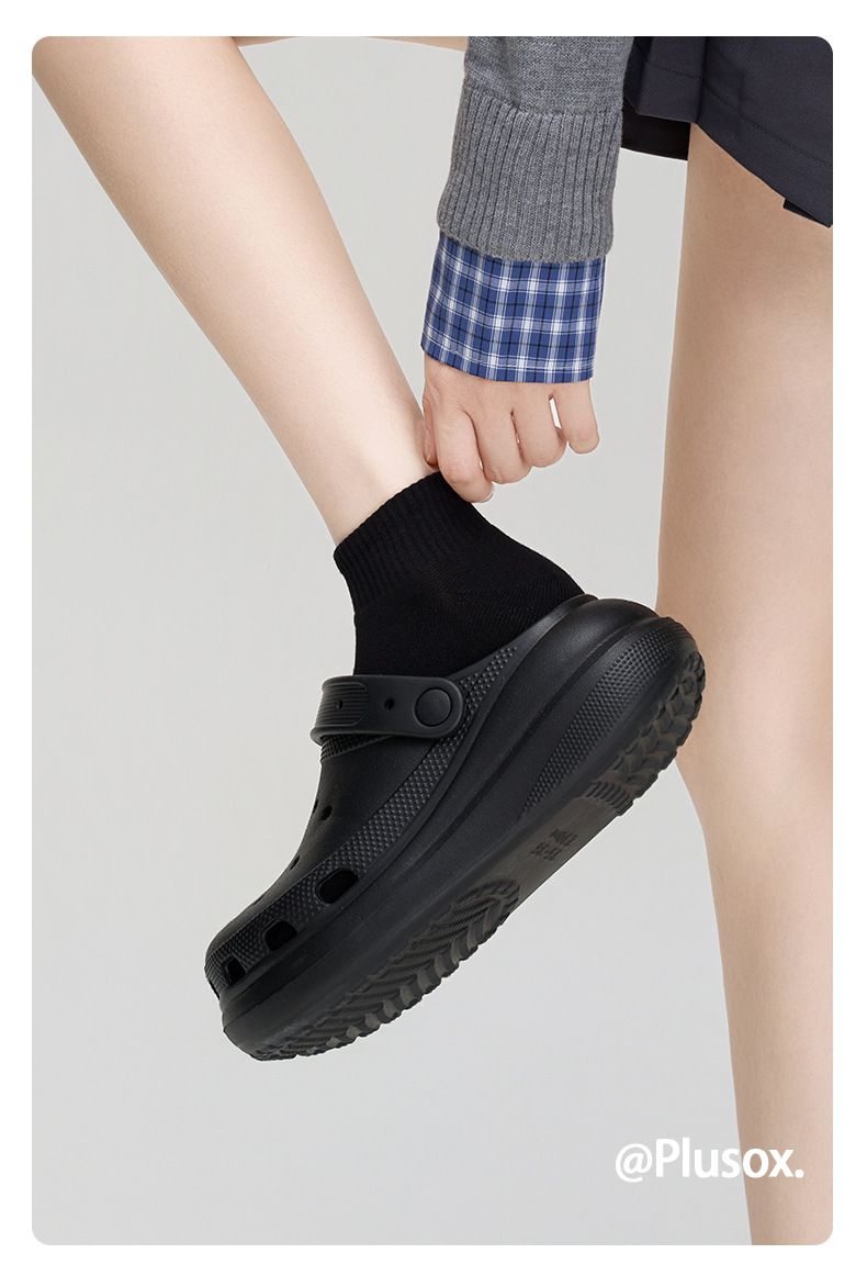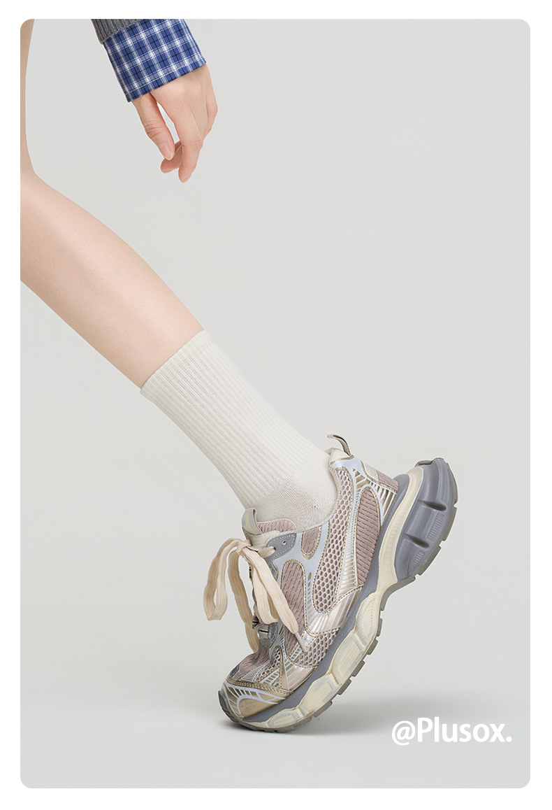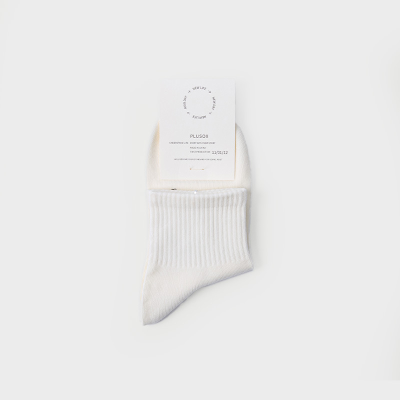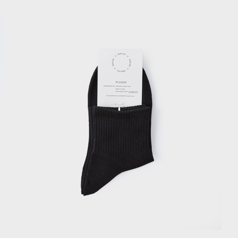 Plusox 양말 여성용 튜브 양말 트렌디 한 블랙 스포츠 가을과 겨울 커플 흰색 양말 단색 가죽 신발 남성스토어 가기