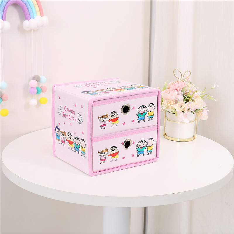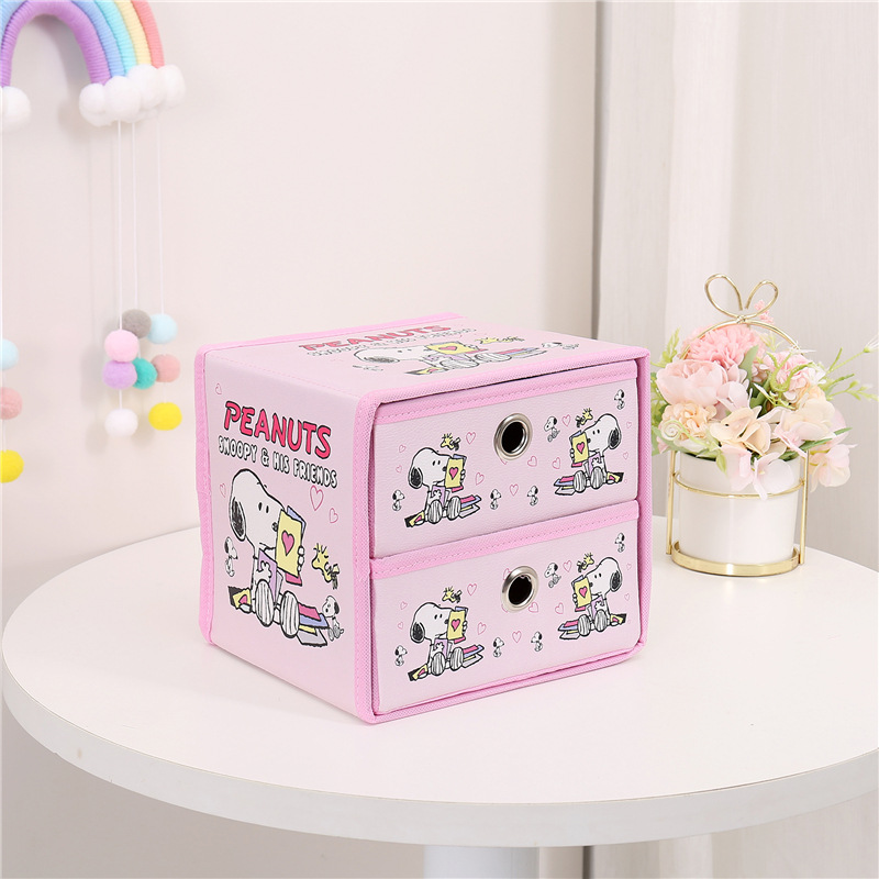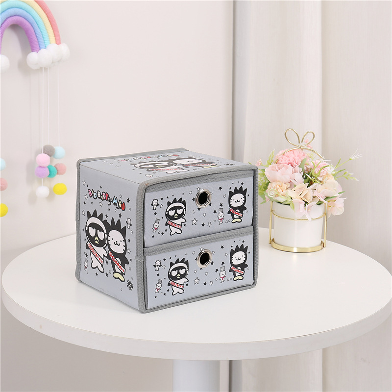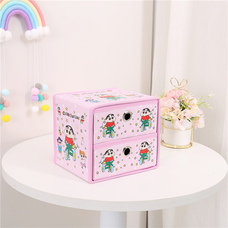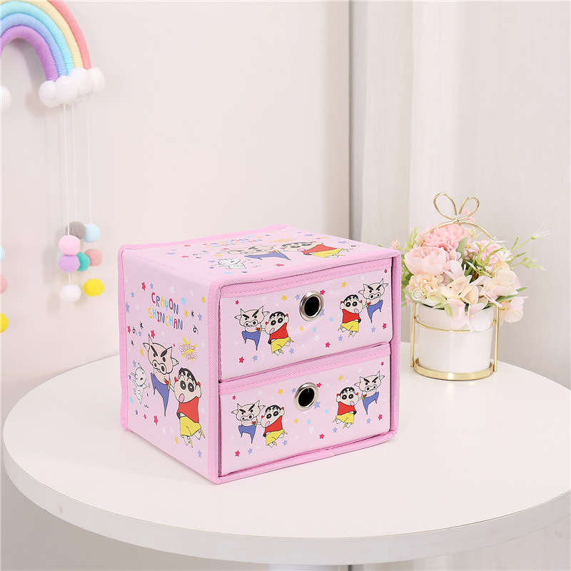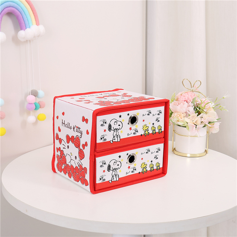 새로운 만화 더블 PU 둥근 구멍 저장 상자 사무실 침실 데스크탑 서랍 유형 접이식 저장 상자