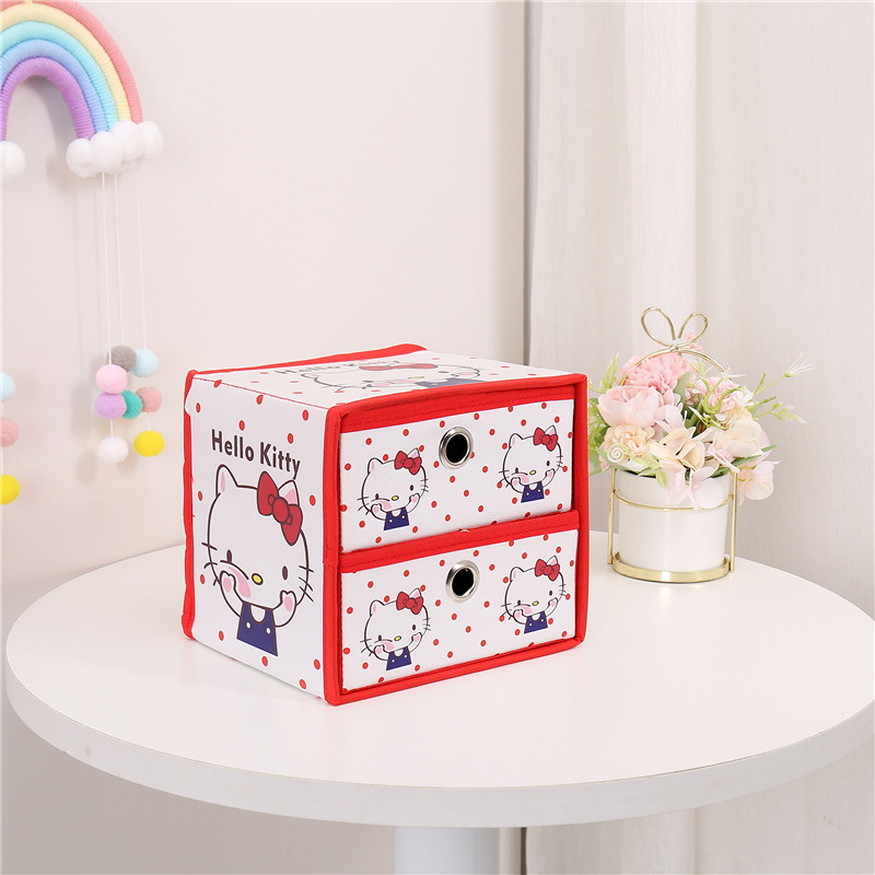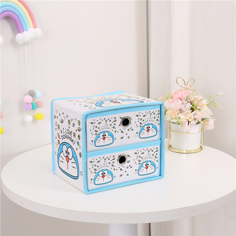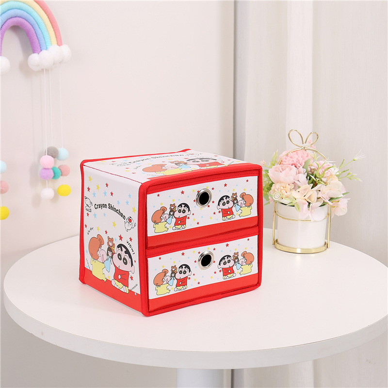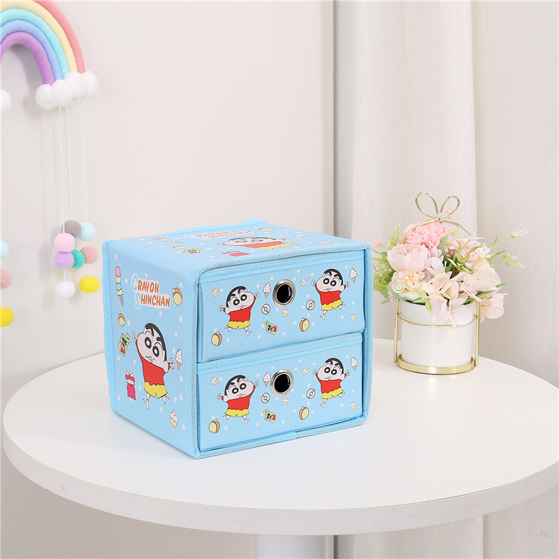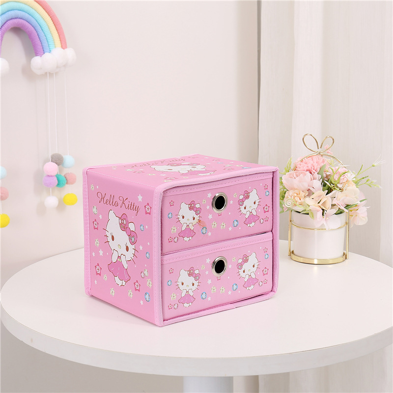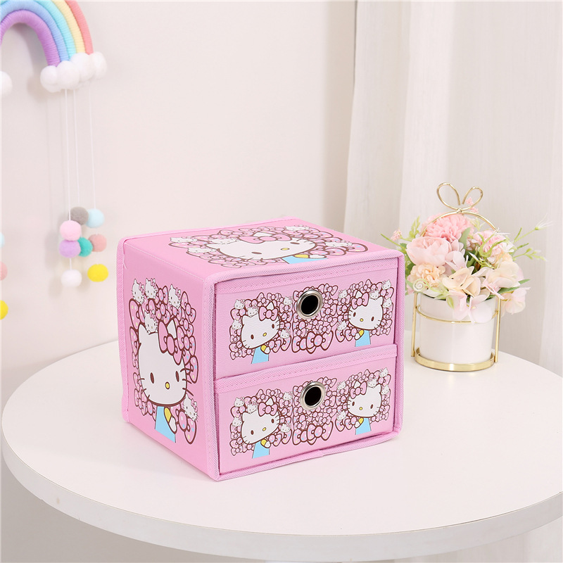 새로운 만화 더블 PU 둥근 구멍 저장 상자 사무실 침실 데스크탑 서랍 유형 접이식 저장 상자