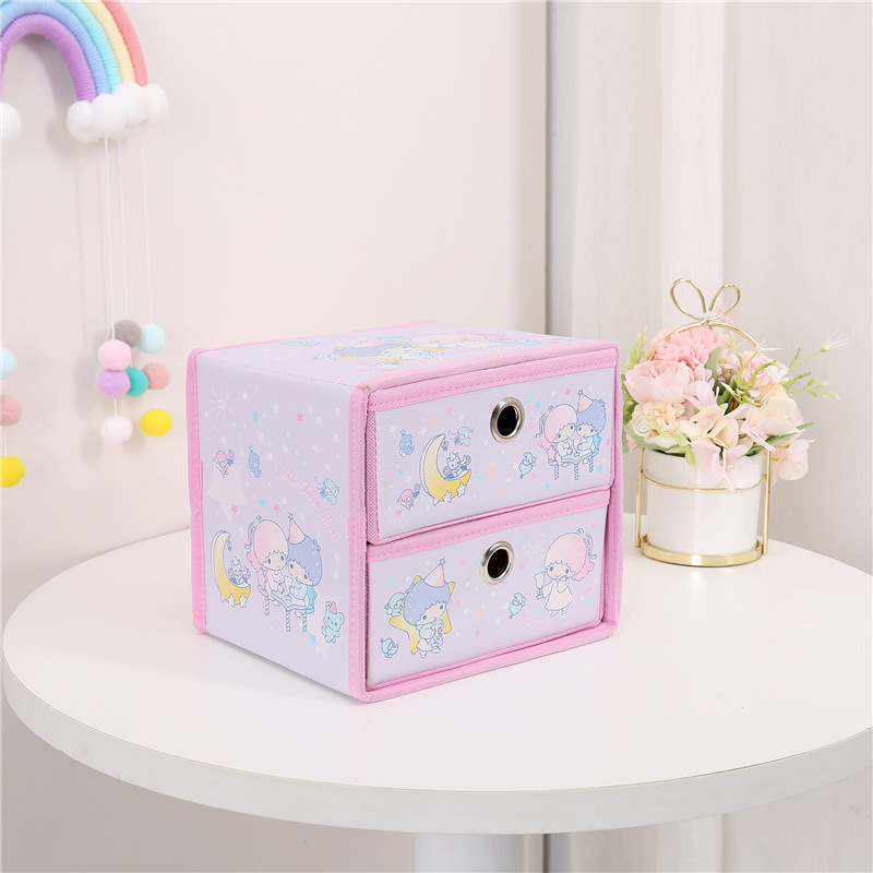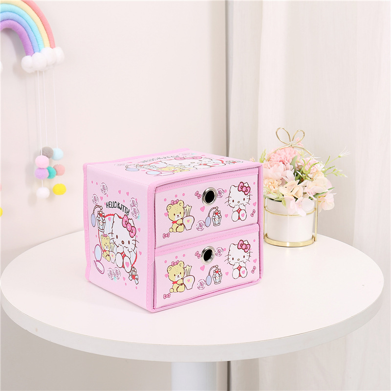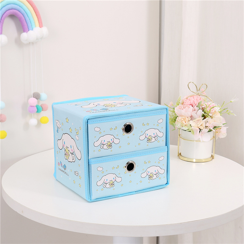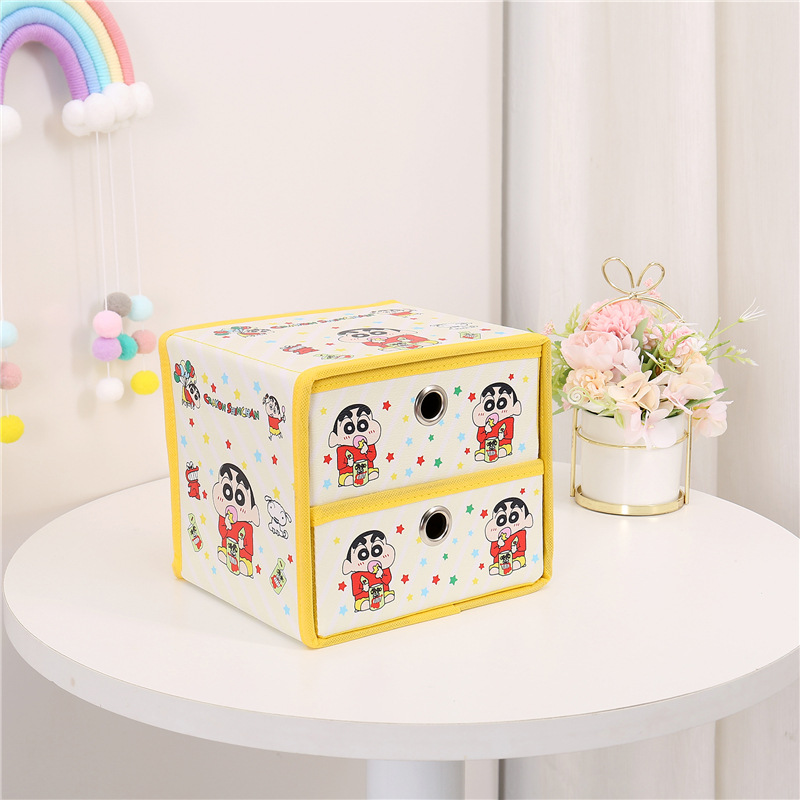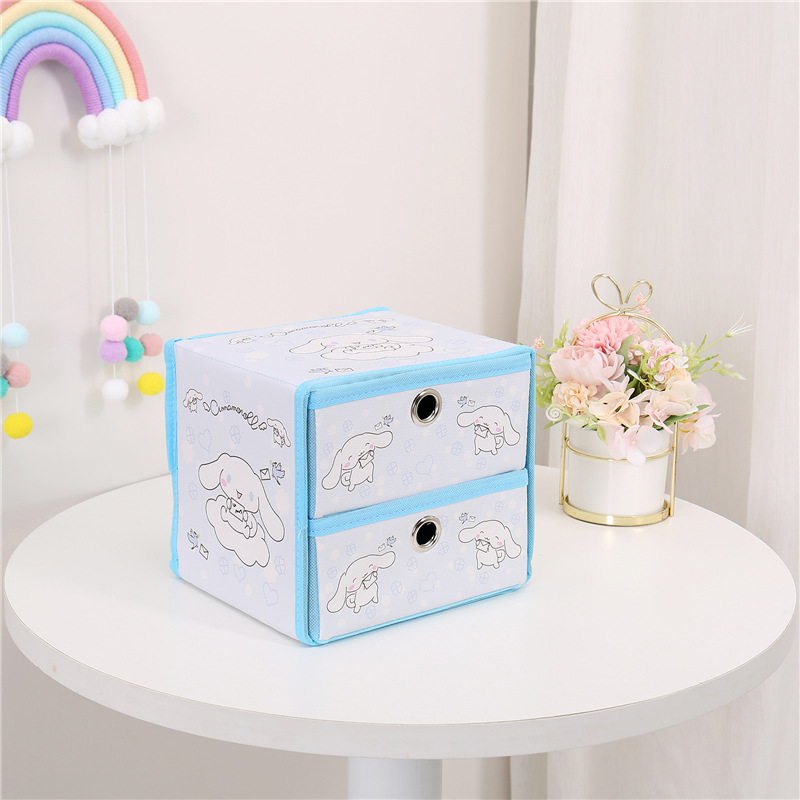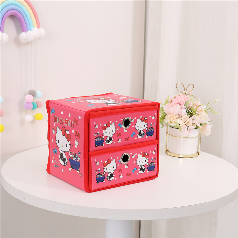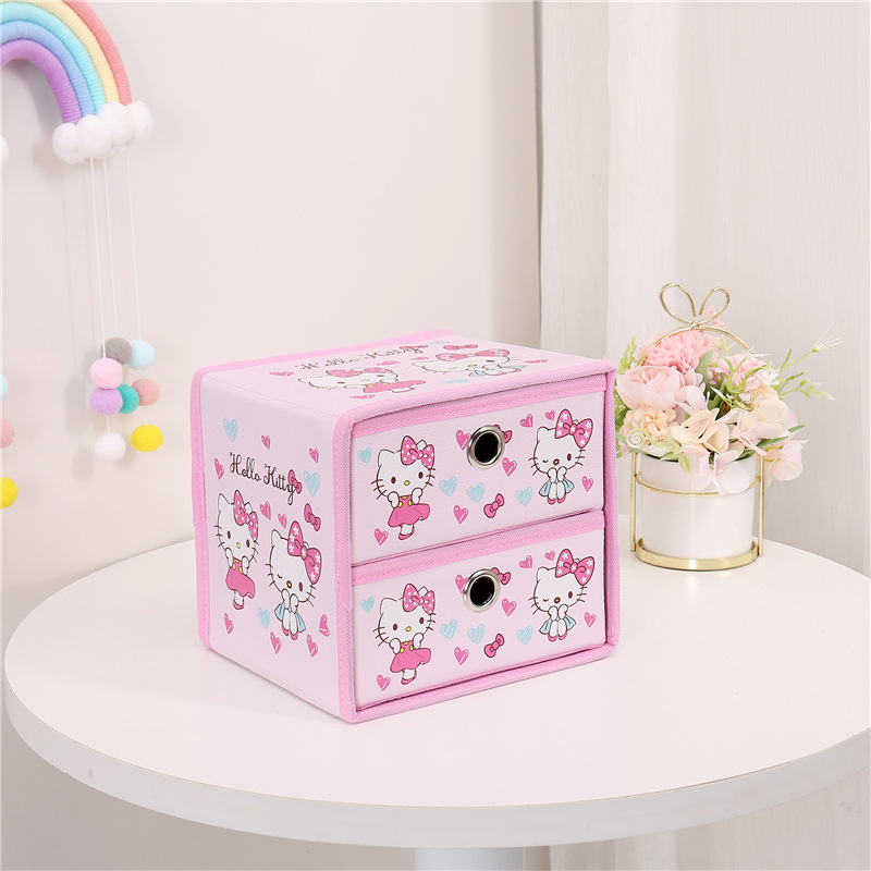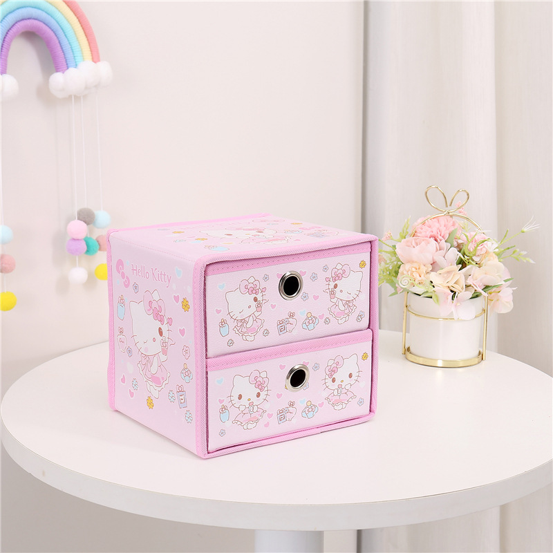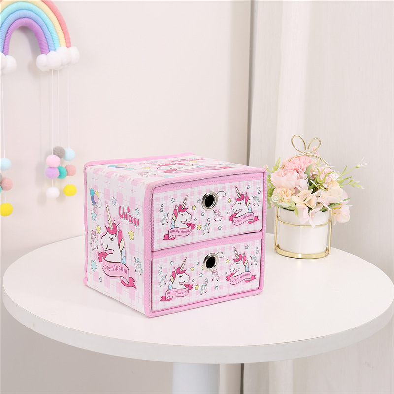 새로운 만화 더블 PU 둥근 구멍 저장 상자 사무실 침실 데스크탑 서랍 유형 접이식 저장 상자스토어 가기