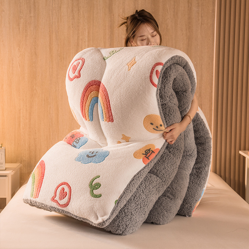 2021 새로운 눈송이 벨벳 겨울 이불 두꺼운 양고기 벨벳 겨울 이불 인쇄 따뜻한 싱글 및 더블 겨울 이불 학생 이불