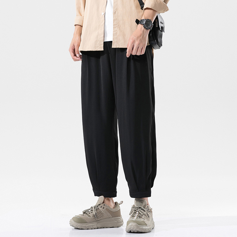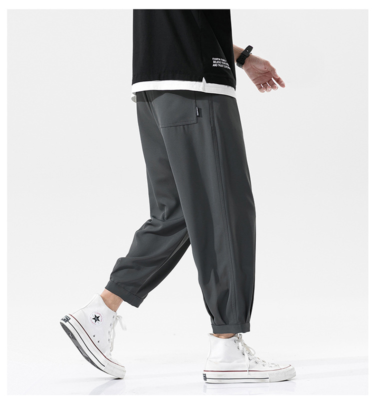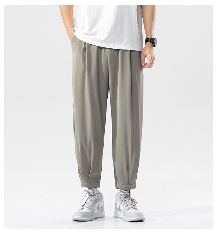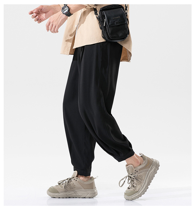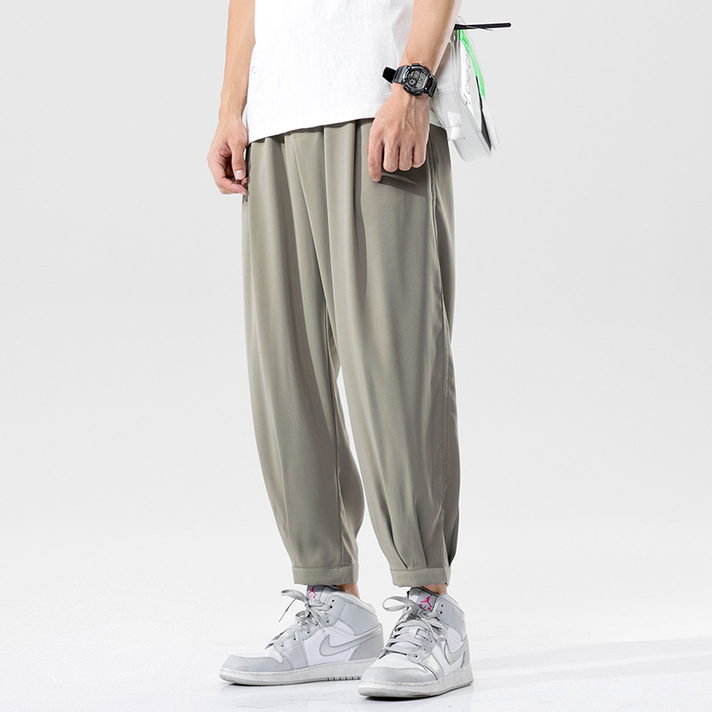 2023 여름 경량 아이스 실크 9부 캐주얼 바지 남성용 루즈한 한국식 레깅스 트렌디 홍콩 스타일 하렘 팬츠