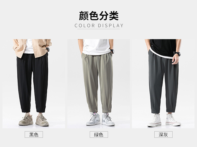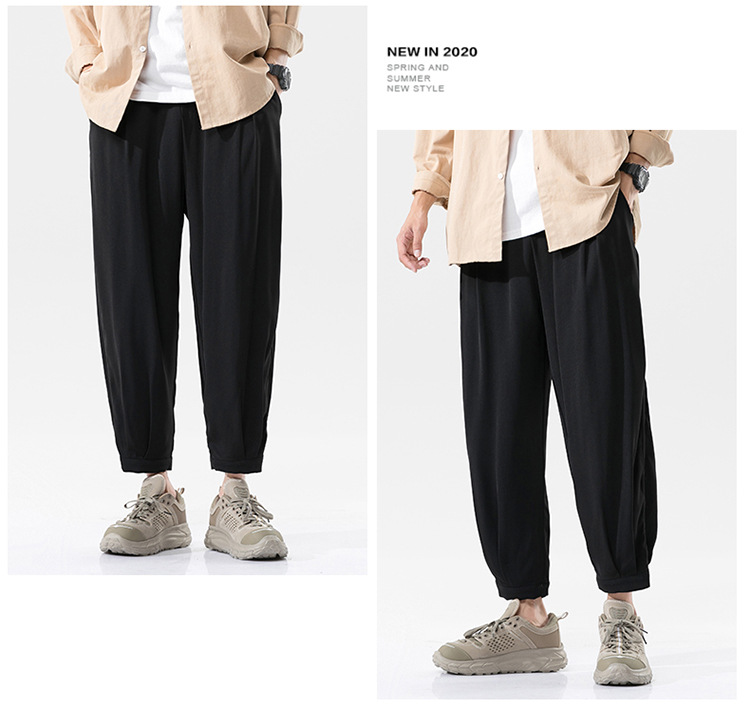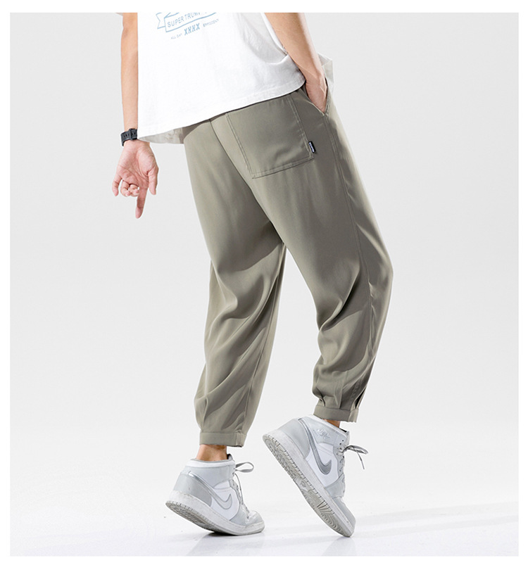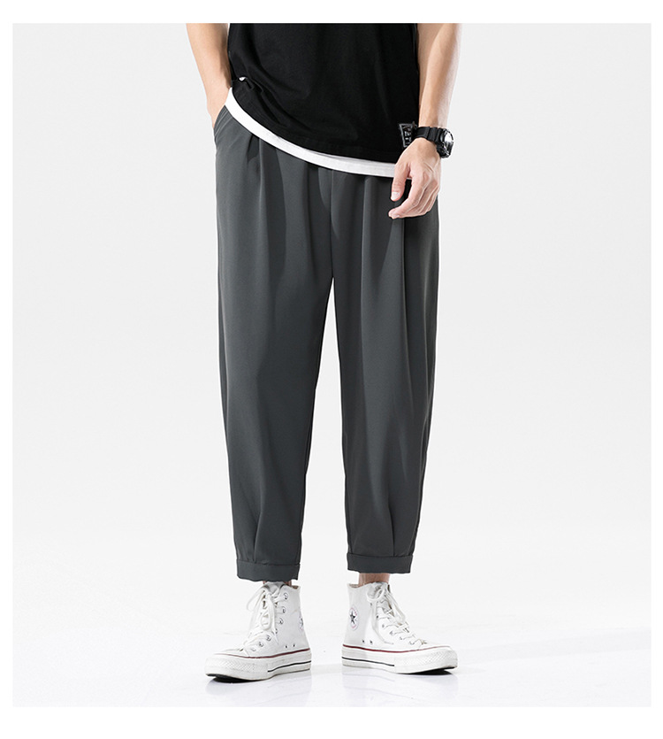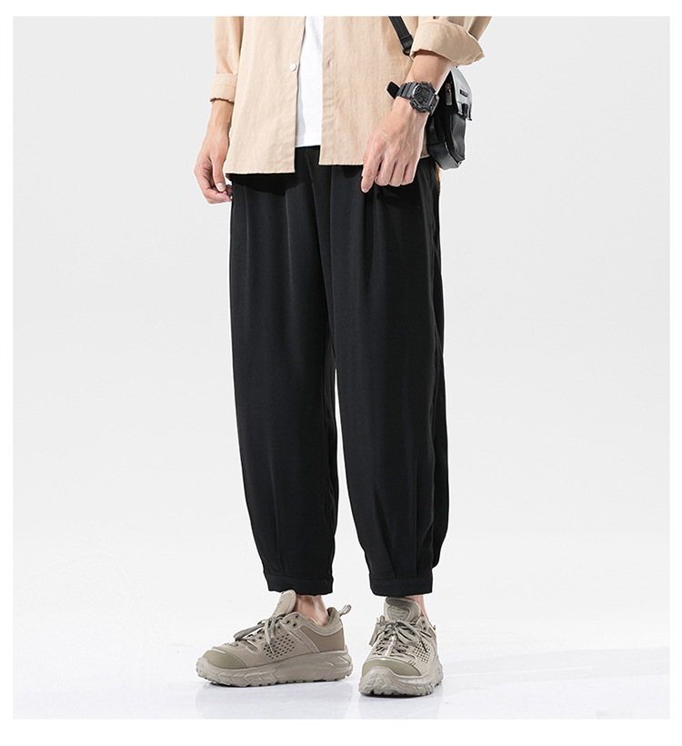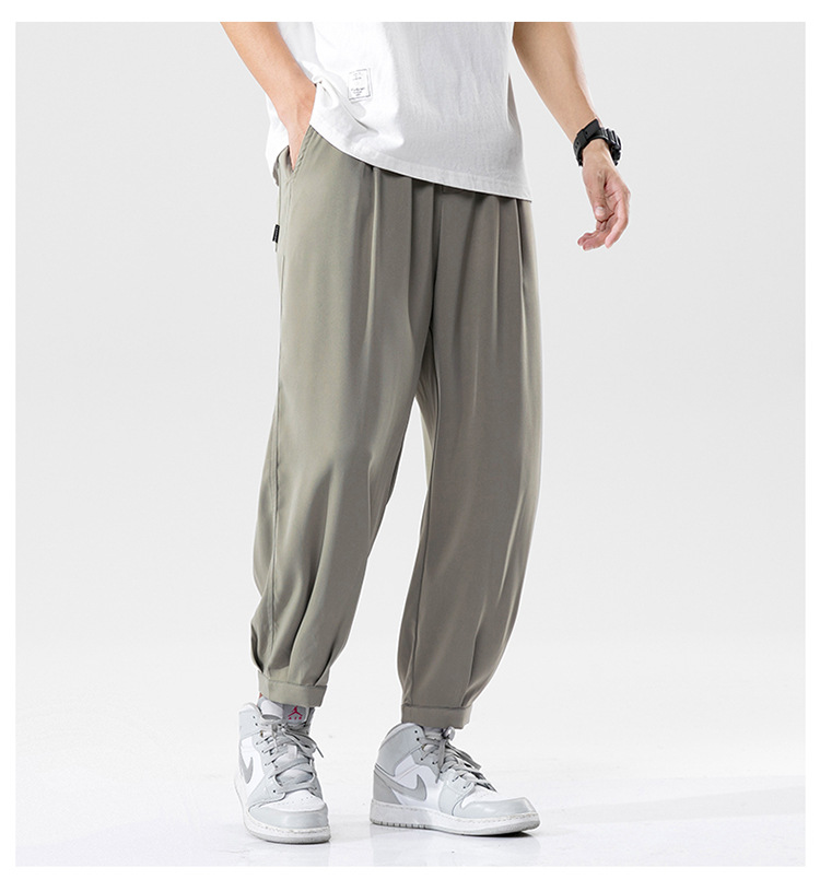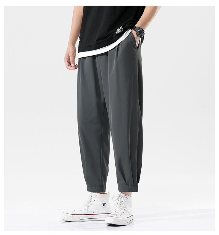 2023 여름 경량 아이스 실크 9부 캐주얼 바지 남성용 루즈한 한국식 레깅스 트렌디 홍콩 스타일 하렘 팬츠스토어 가기