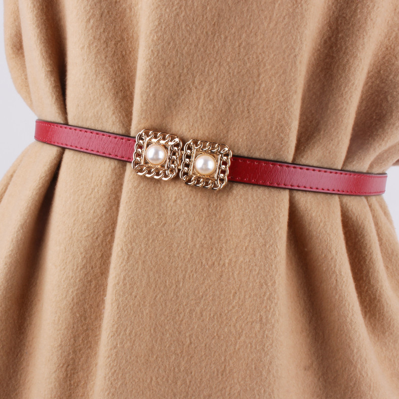 블랙 얇은 벨트 여성의 새로운 간단한 모든 일치 장식 원피스 원피스 패션 허리 체인 스웨터 정품 가죽 벨트