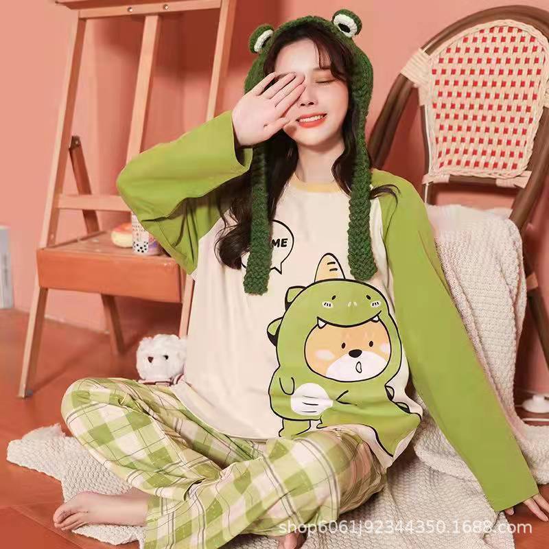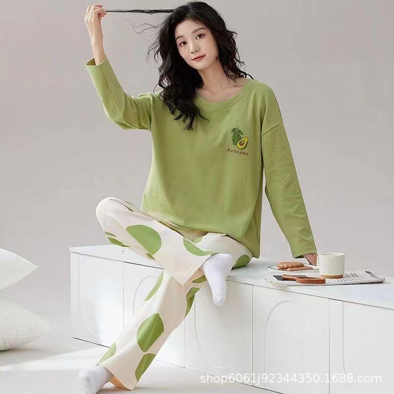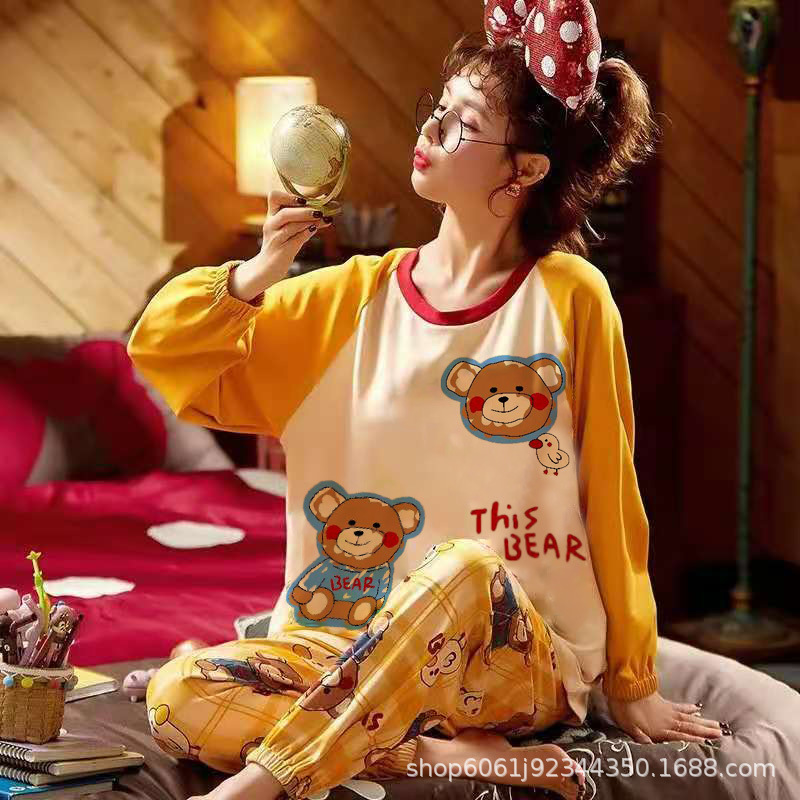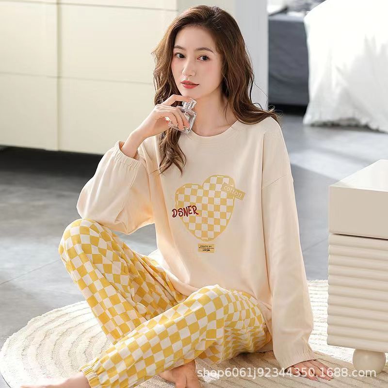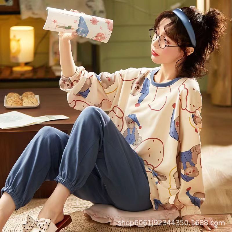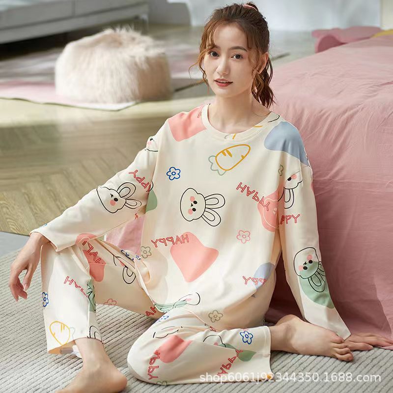2021 새로운 잠옷 여자의 봄과 가을 긴 소매 가을 인터넷 연예인 겉옷 가을과 겨울 가정복 투피스 세트스토어 가기