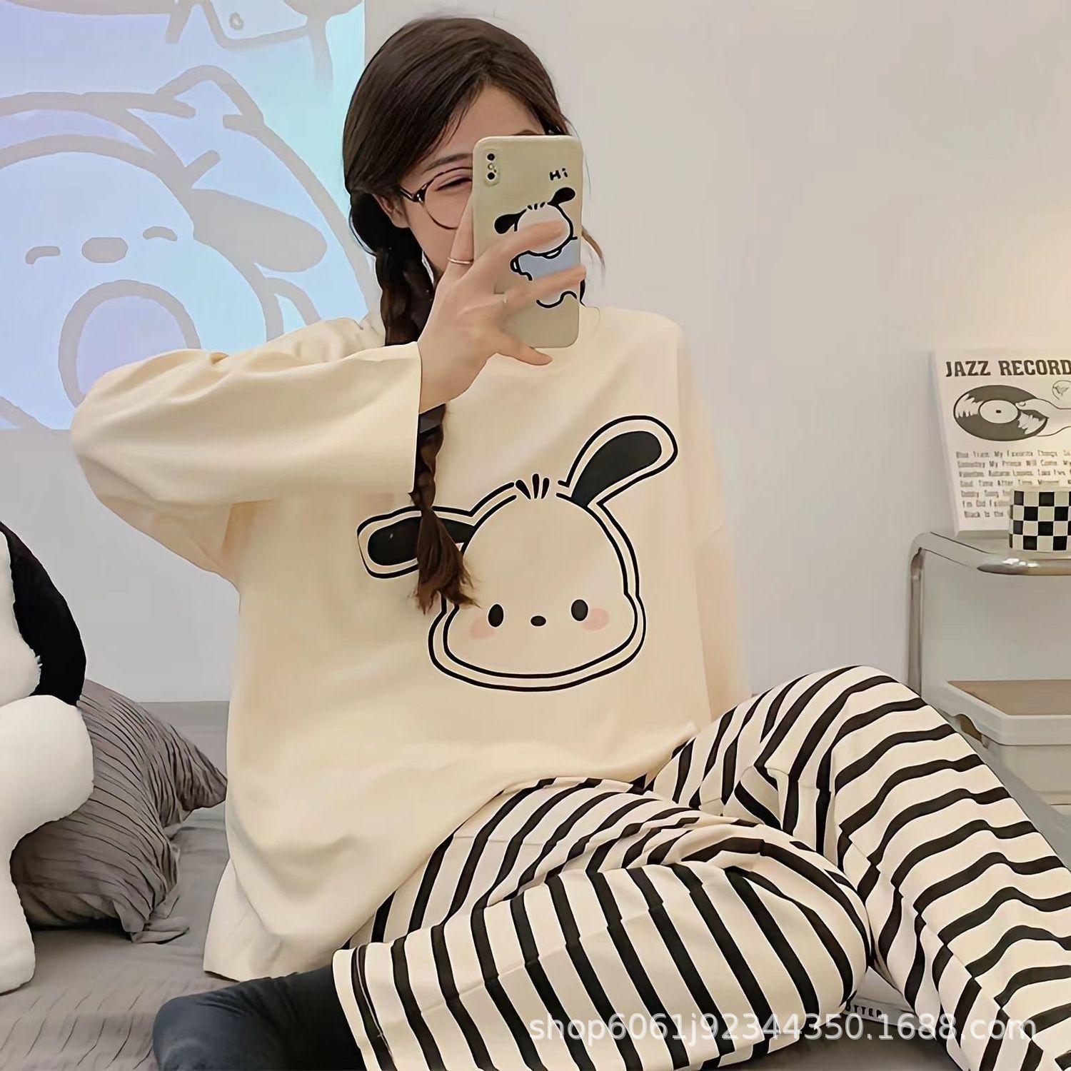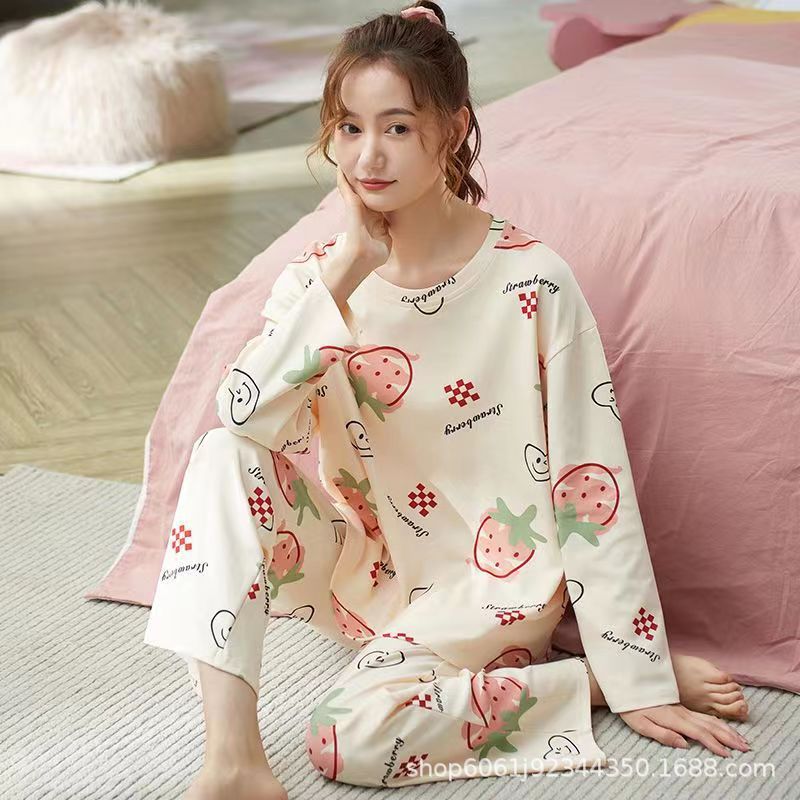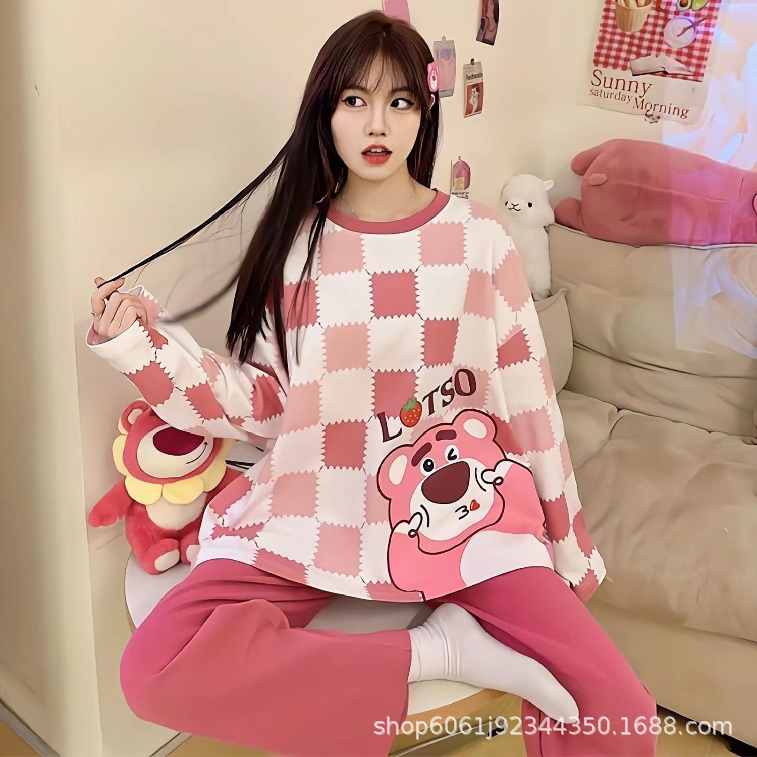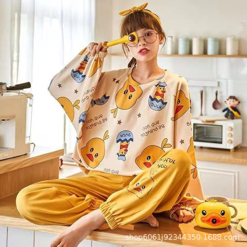 2021 새로운 잠옷 여자의 봄과 가을 긴 소매 가을 인터넷 연예인 겉옷 가을과 겨울 가정복 투피스 세트스토어 가기