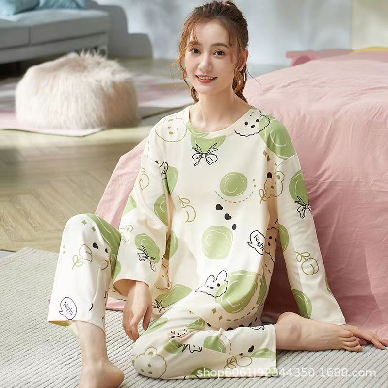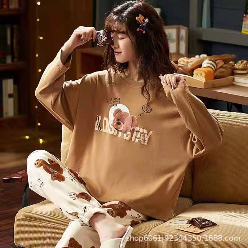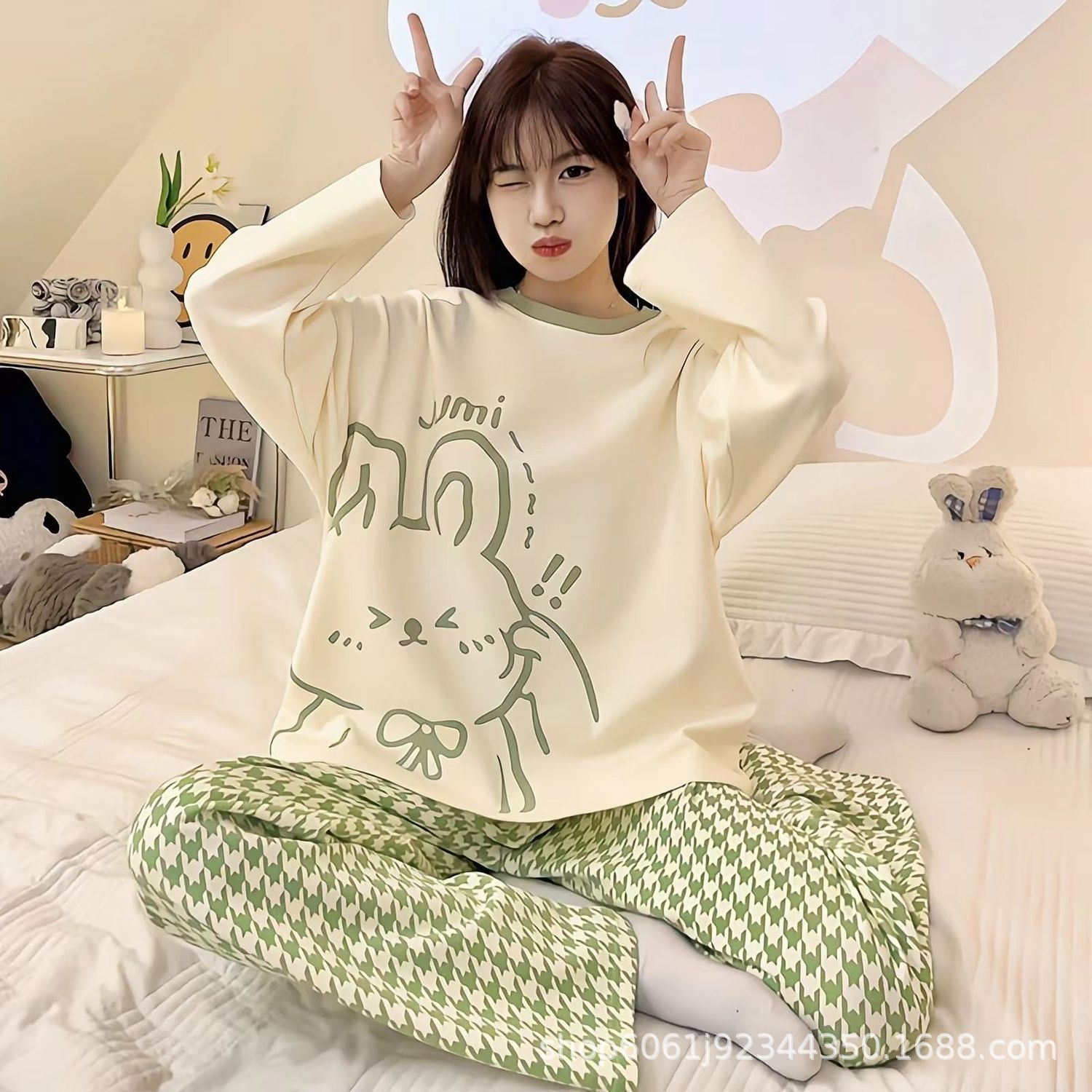 2021 새로운 잠옷 여자의 봄과 가을 긴 소매 가을 인터넷 연예인 겉옷 가을과 겨울 가정복 투피스 세트