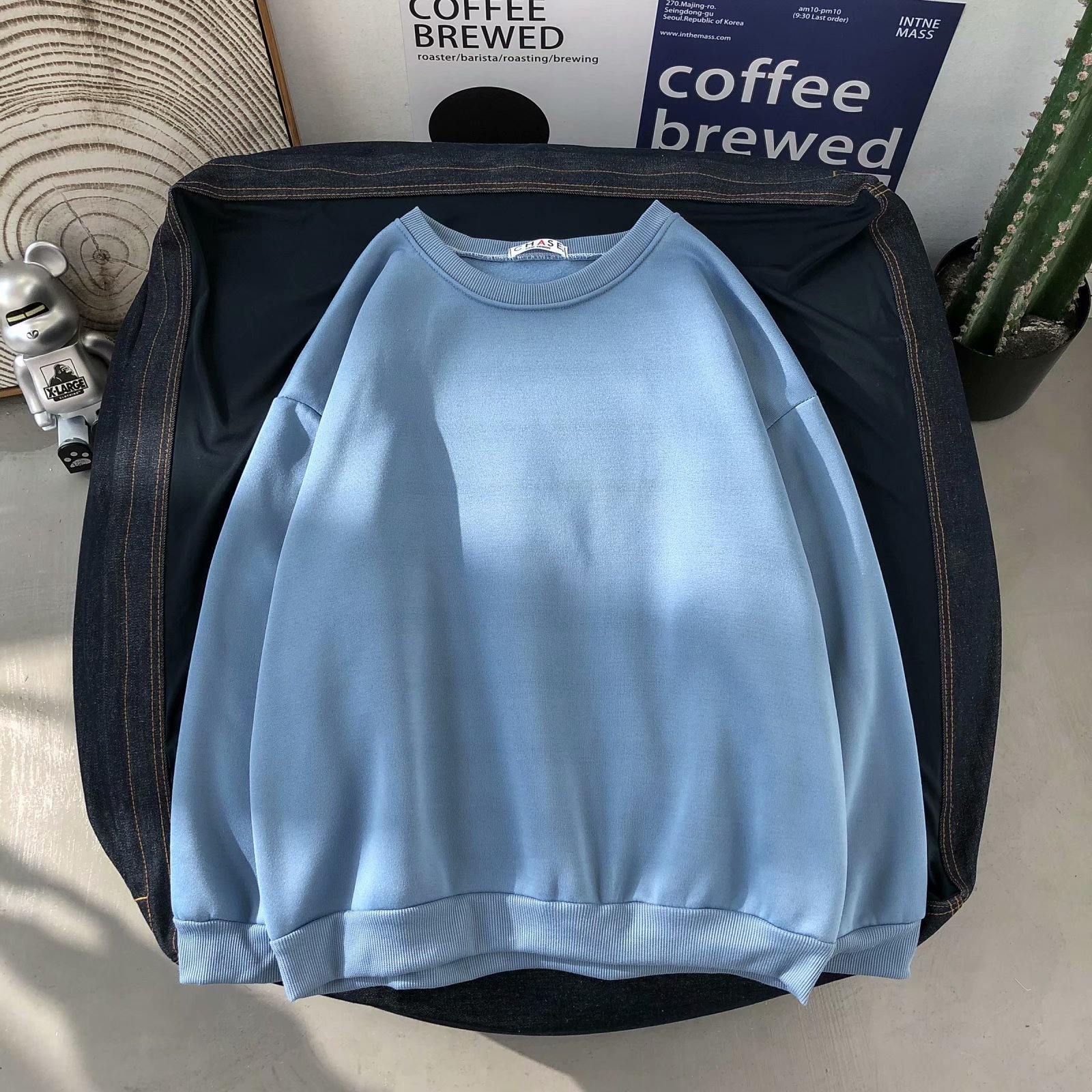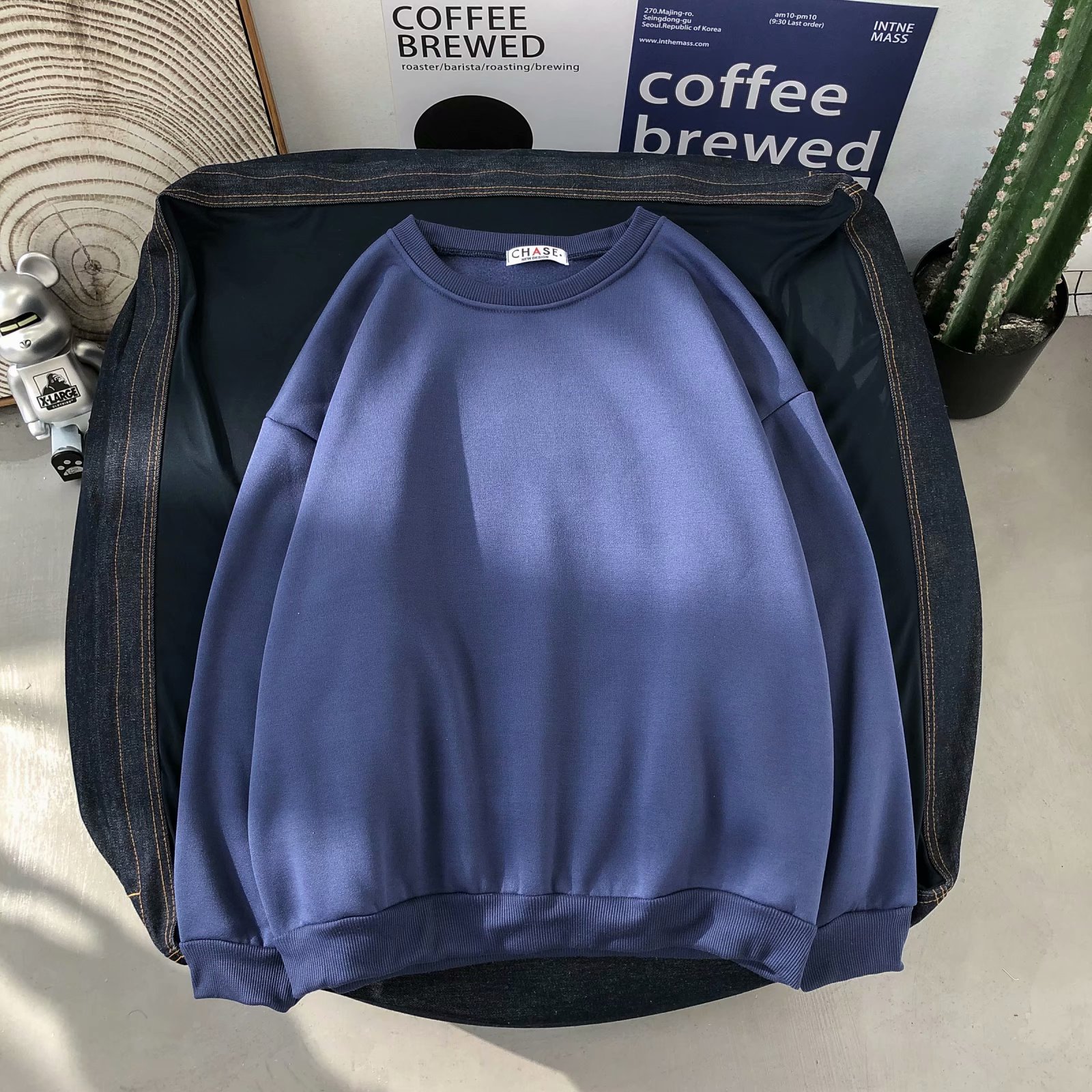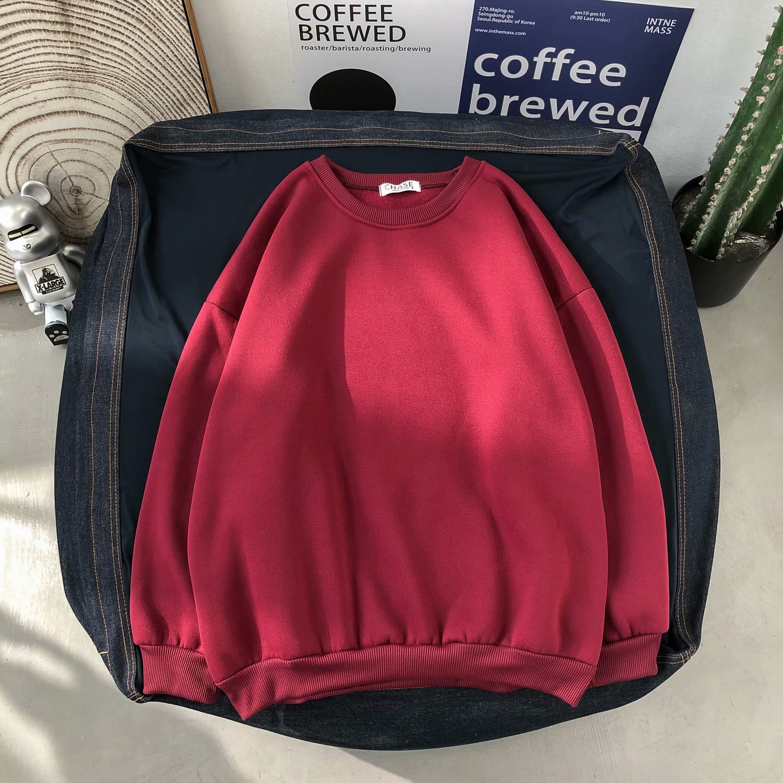 2021 새로운 멀티 컬러 가을과 겨울 남성 패션 브랜드 플러스 사이즈 단색 스웨터 남성용 기모 두꺼운 크루 넥 클래스 유니폼 바지스토어 가기