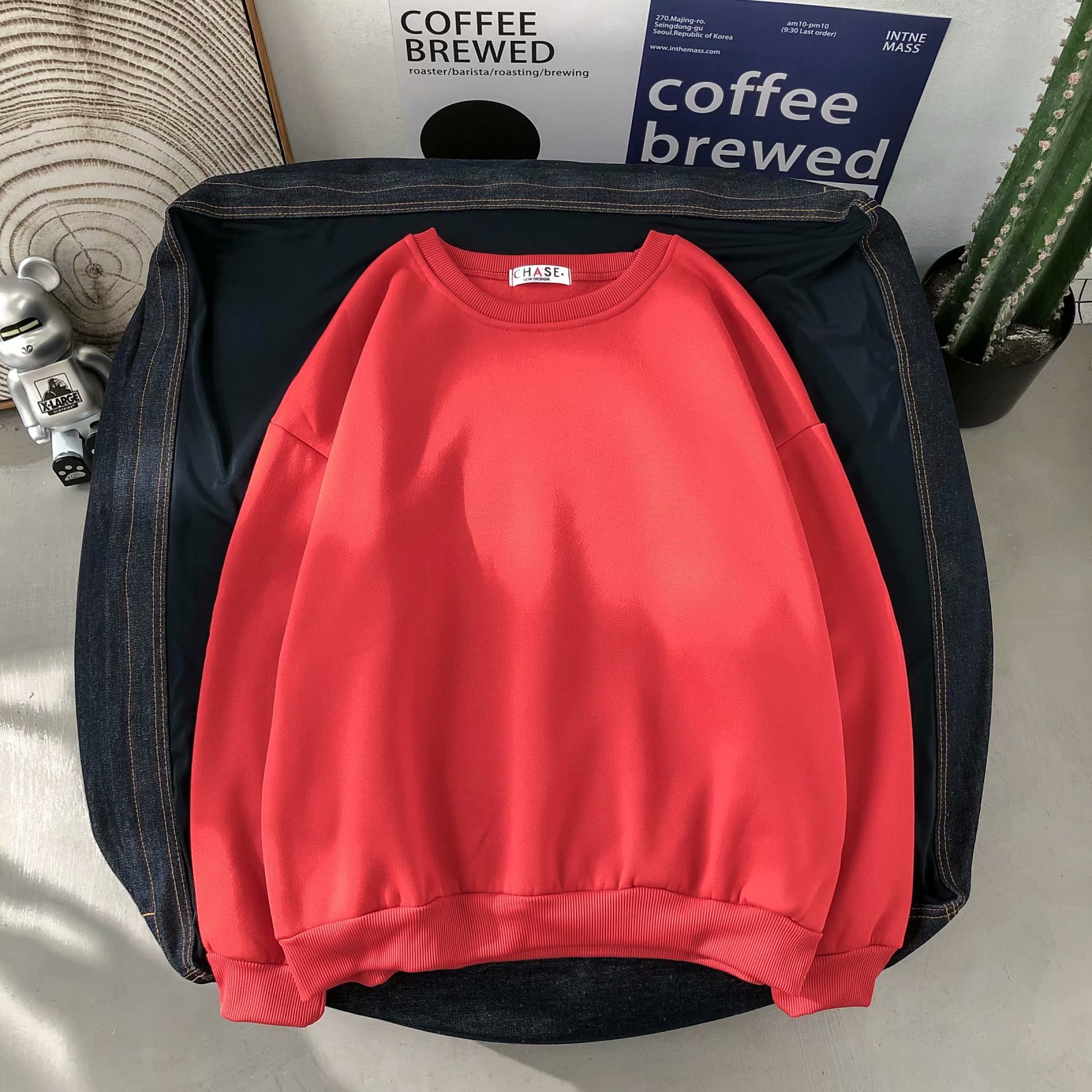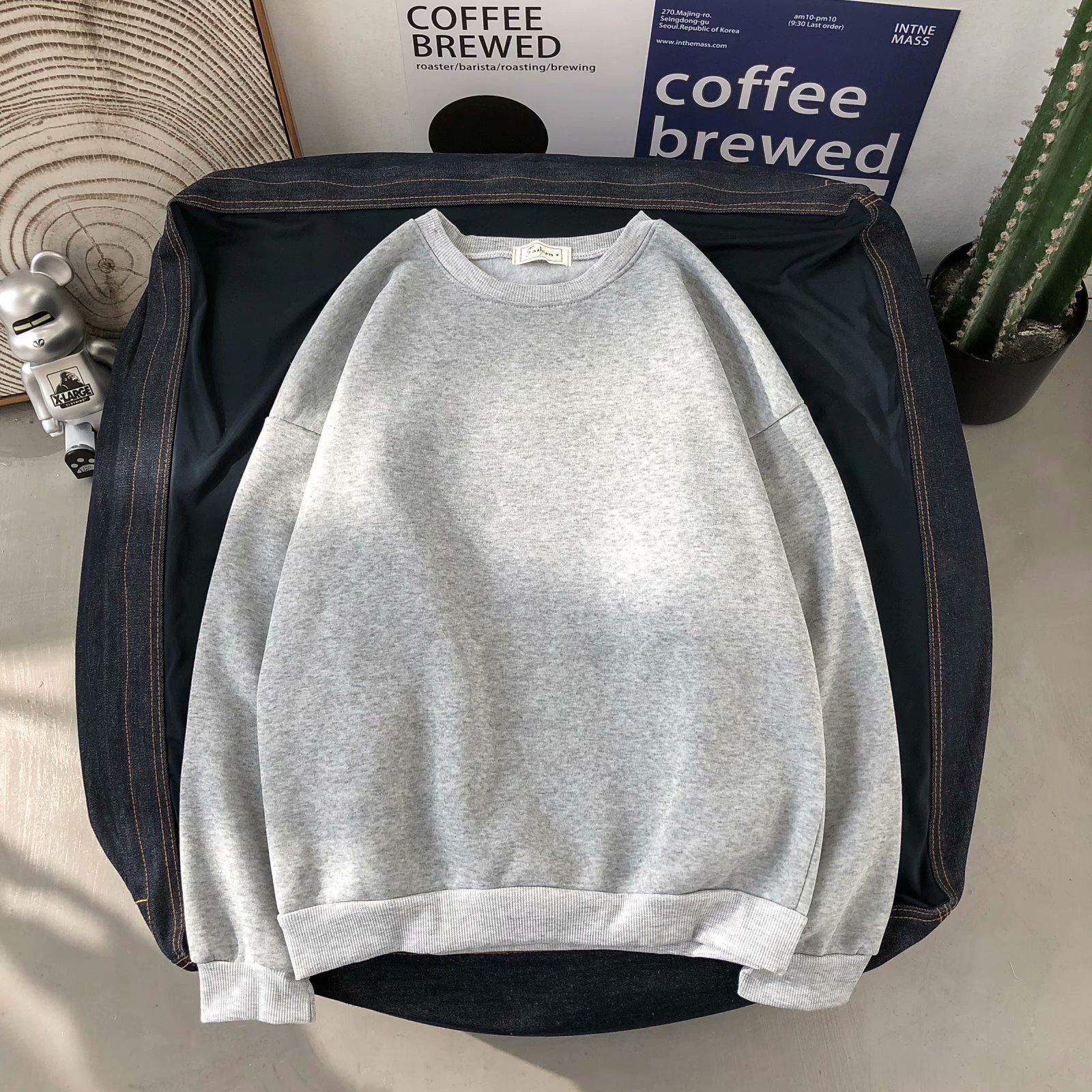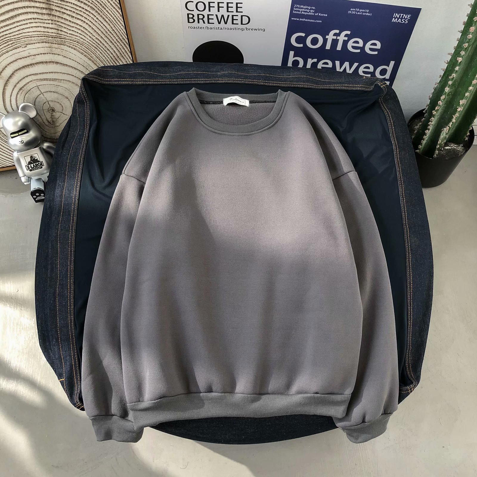 2021 새로운 멀티 컬러 가을과 겨울 남성 패션 브랜드 플러스 사이즈 단색 스웨터 남성용 기모 두꺼운 크루 넥 클래스 유니폼 바지스토어 가기