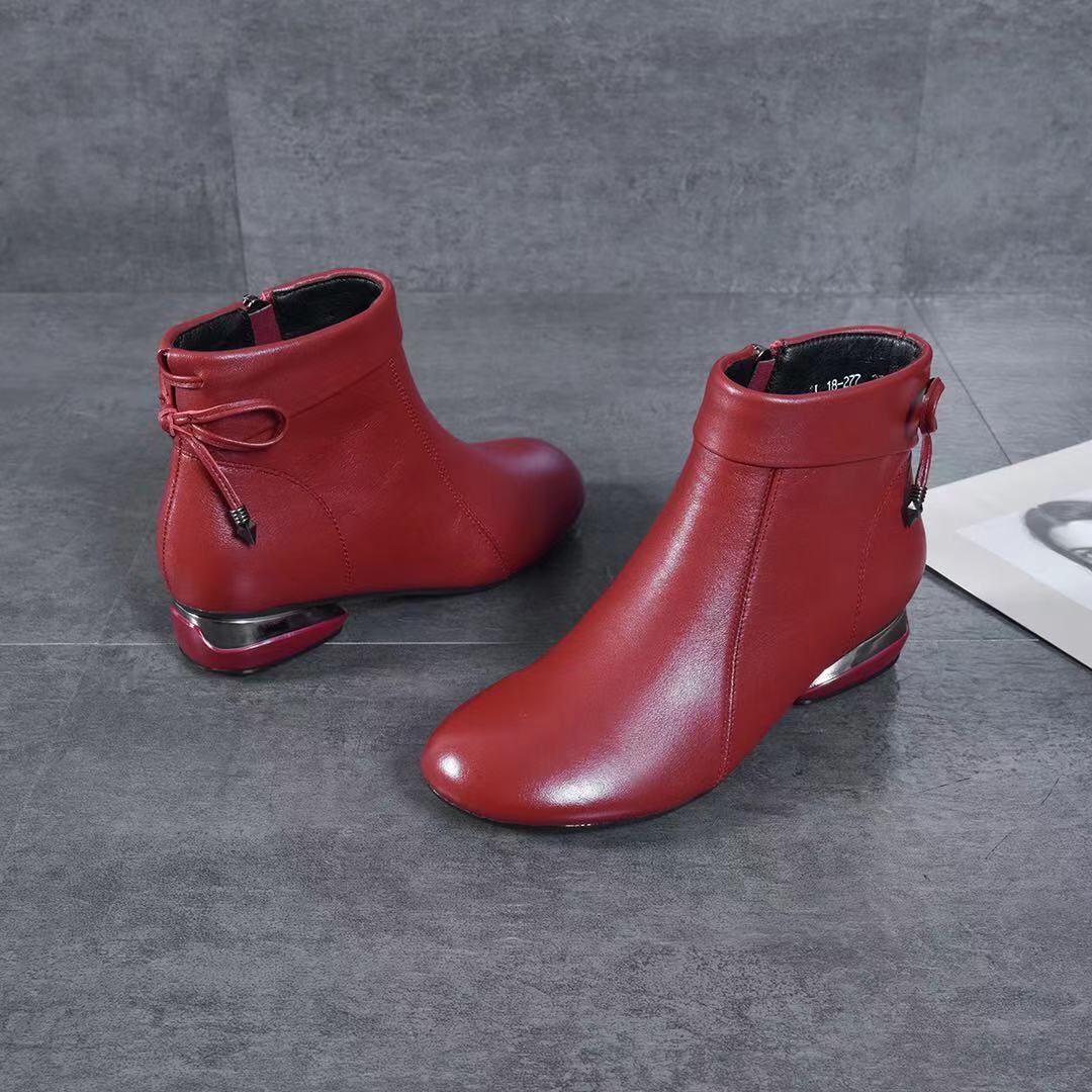 2021 새로운 스몰 쇼트 부츠 여성용 정품 가죽 로우 힐 청키 힐 라운드 토 슈즈 봄과 가을 싱글 부츠 짧은 배럴 모든 매치 마틴 부츠 여성