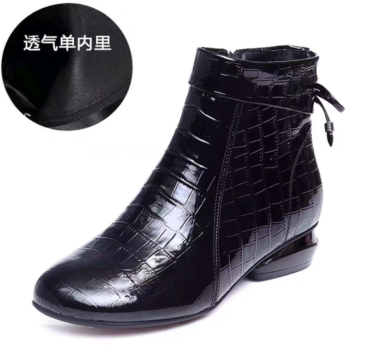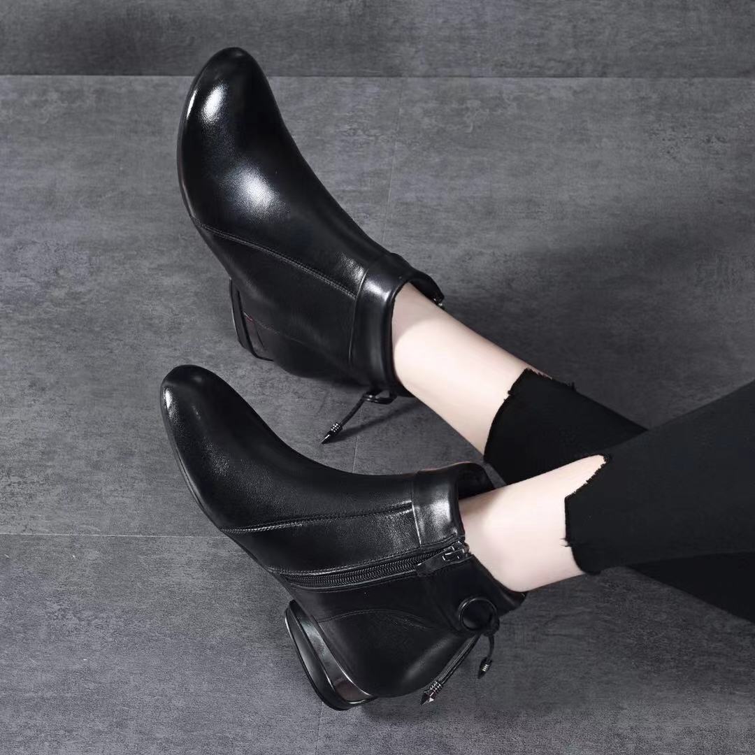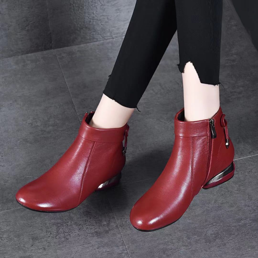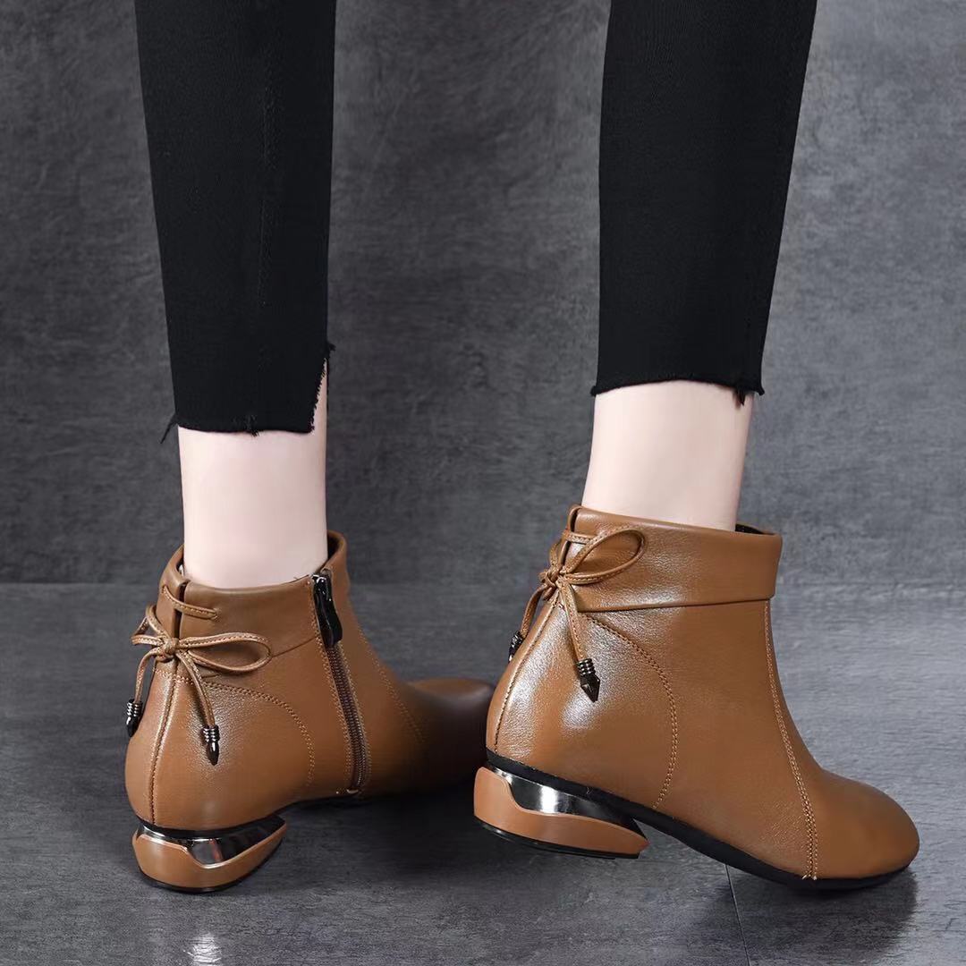 2021 새로운 스몰 쇼트 부츠 여성용 정품 가죽 로우 힐 청키 힐 라운드 토 슈즈 봄과 가을 싱글 부츠 짧은 배럴 모든 매치 마틴 부츠 여성스토어 가기