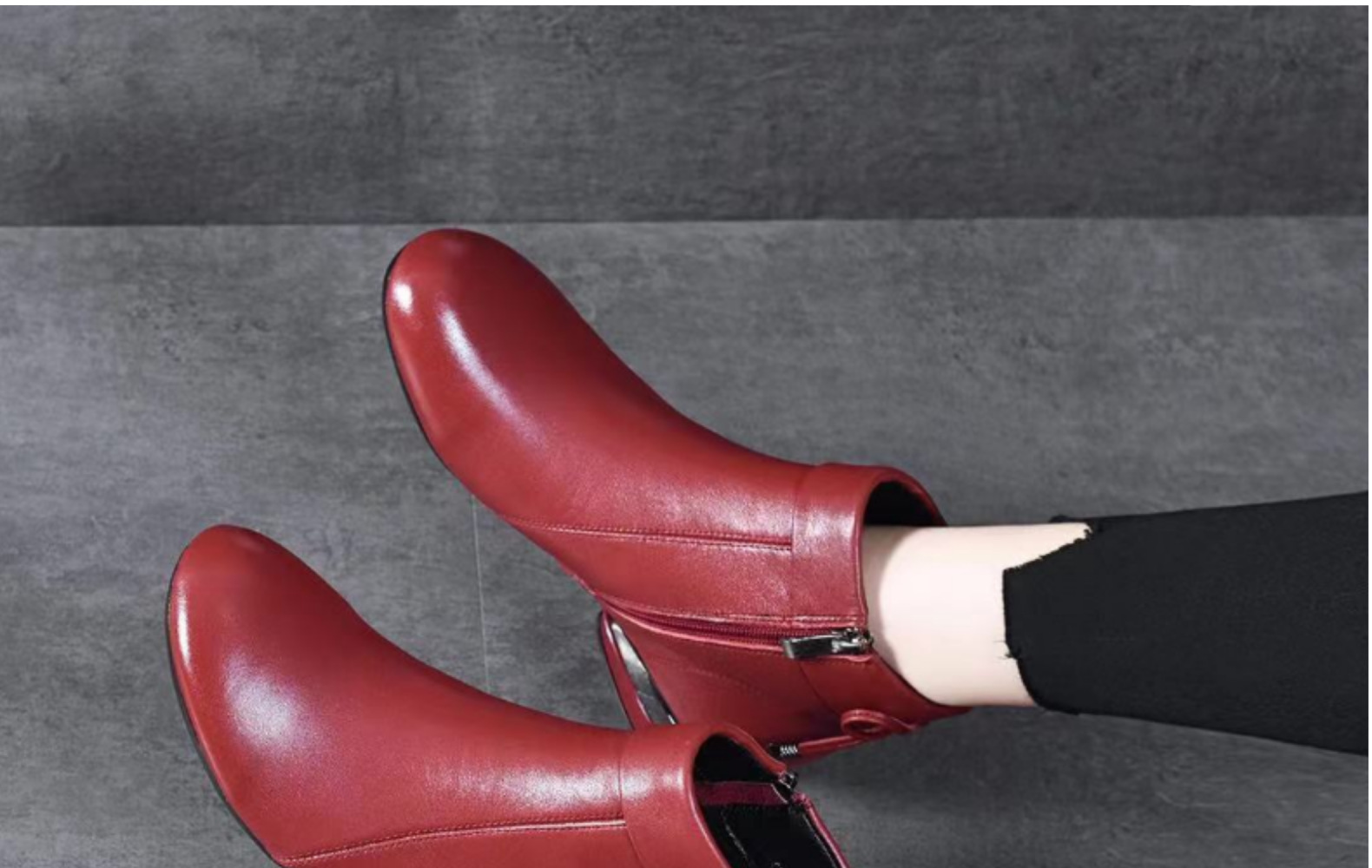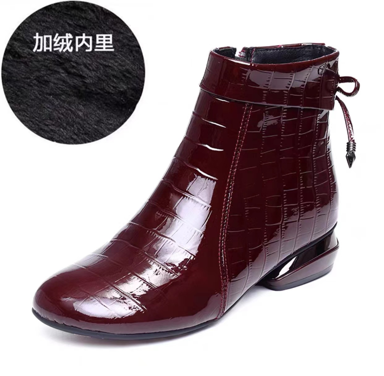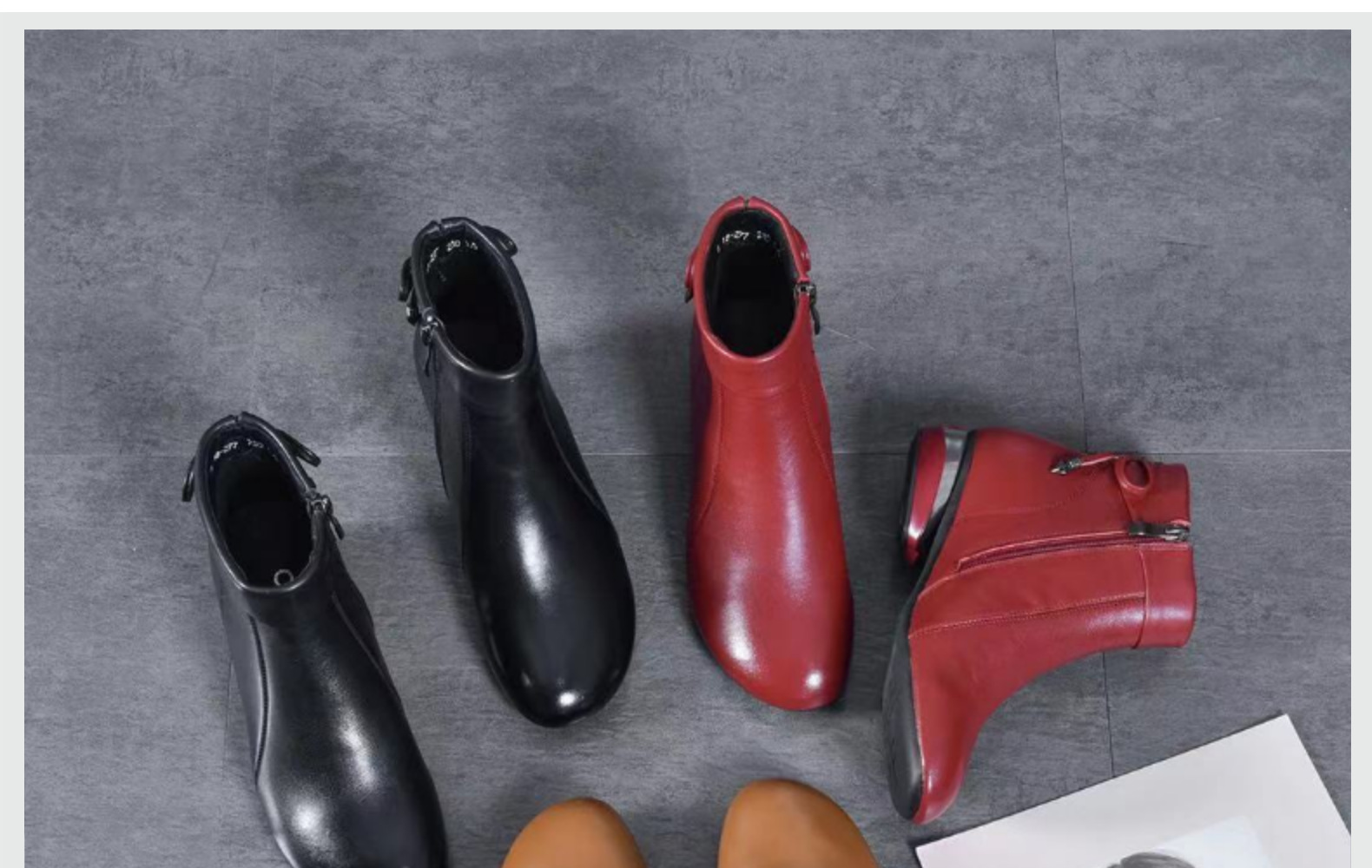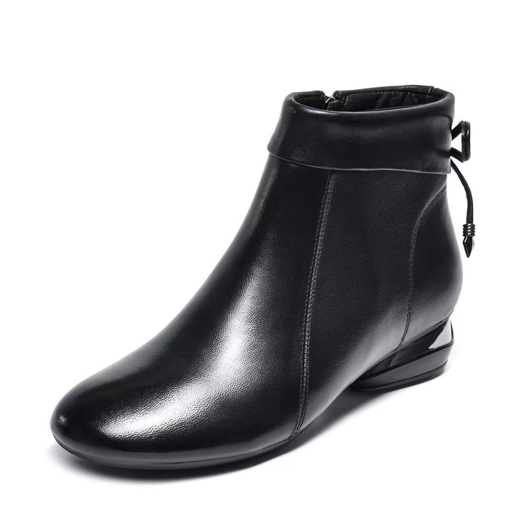 2021 새로운 스몰 쇼트 부츠 여성용 정품 가죽 로우 힐 청키 힐 라운드 토 슈즈 봄과 가을 싱글 부츠 짧은 배럴 모든 매치 마틴 부츠 여성스토어 가기