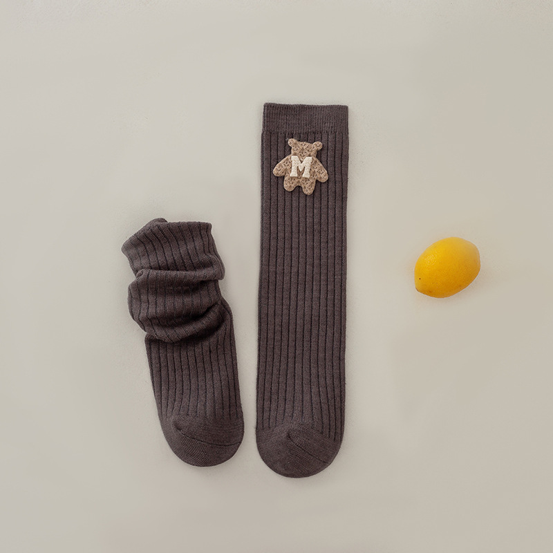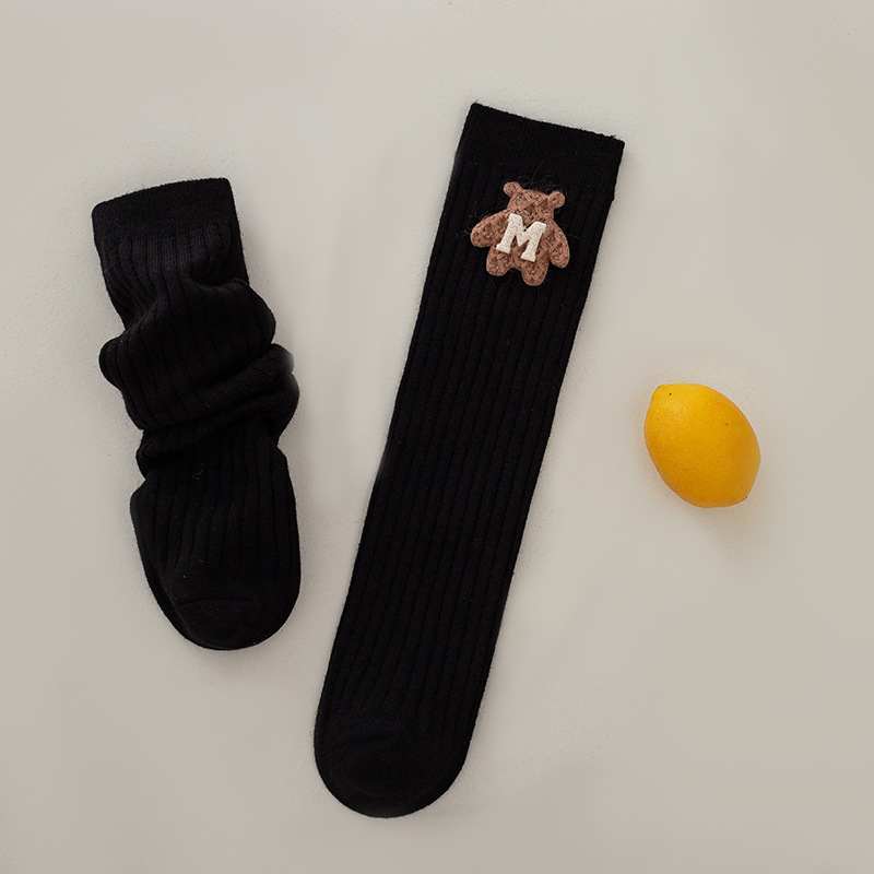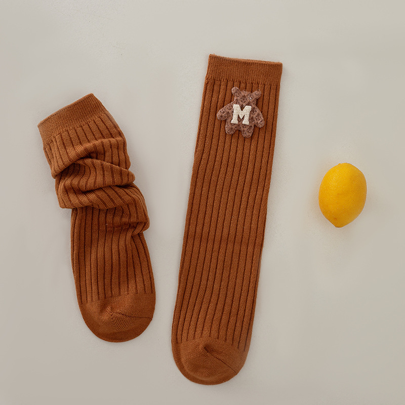 2022 가을 아기 튜브 양말 단색 트위스트 곰 소녀 튜브 스타킹 더미 양말의 한국어 버전 도매스토어 가기