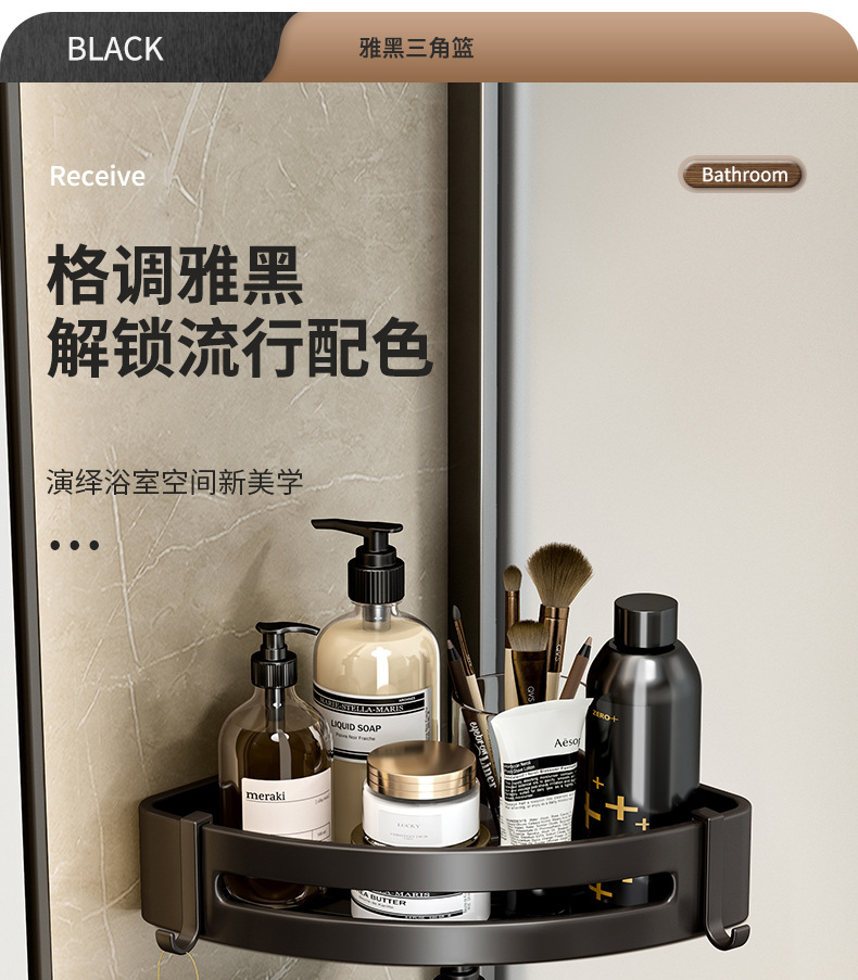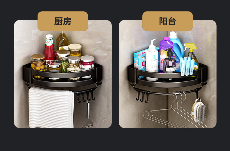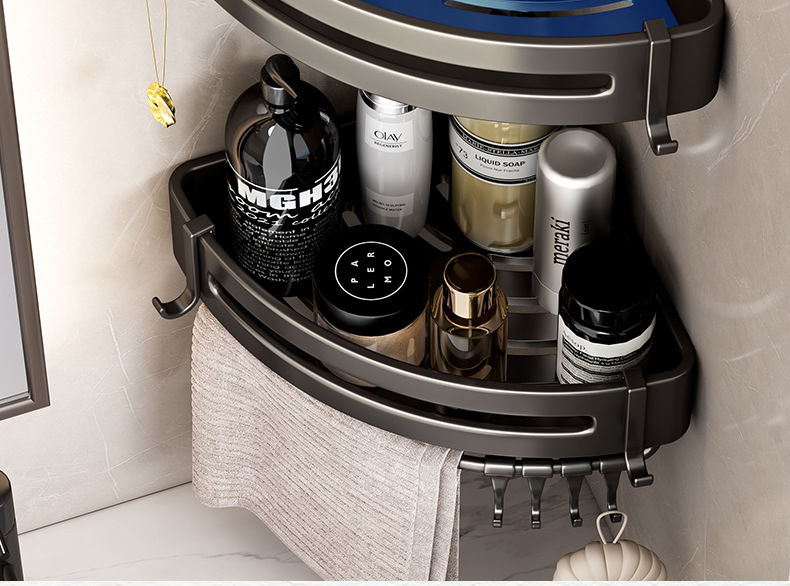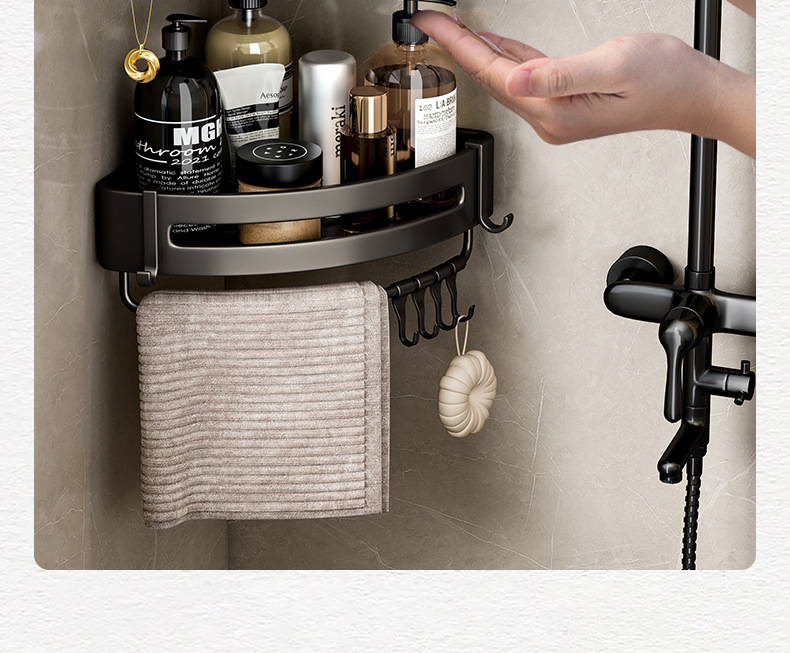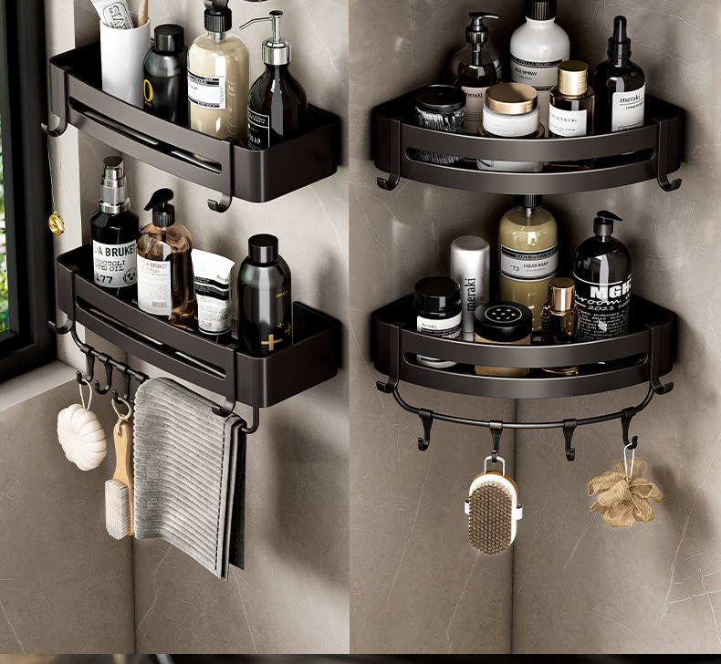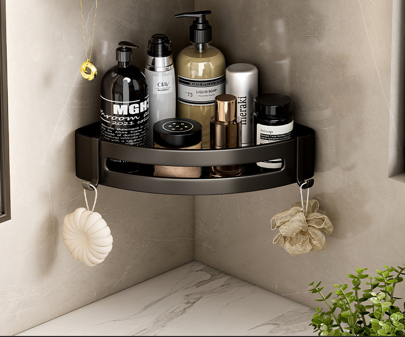 욕실 수납 랙 삼각형 벽걸이 벽 코너 비 펀치 공간 알루미늄 화장실 블랙 화장실 수납