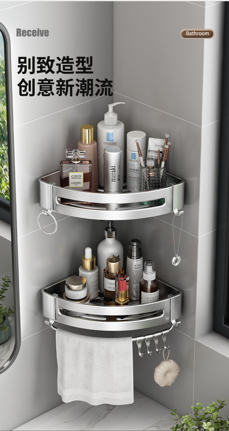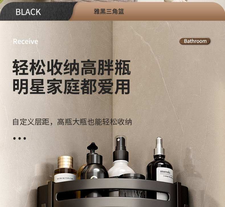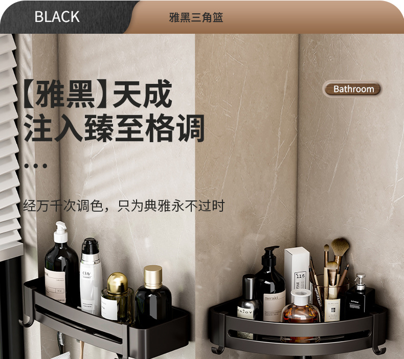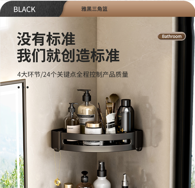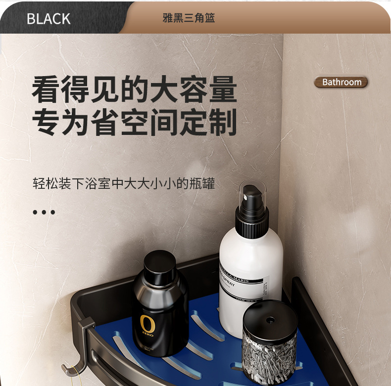욕실 수납 랙 삼각형 벽걸이 벽 코너 비 펀치 공간 알루미늄 화장실 블랙 화장실 수납