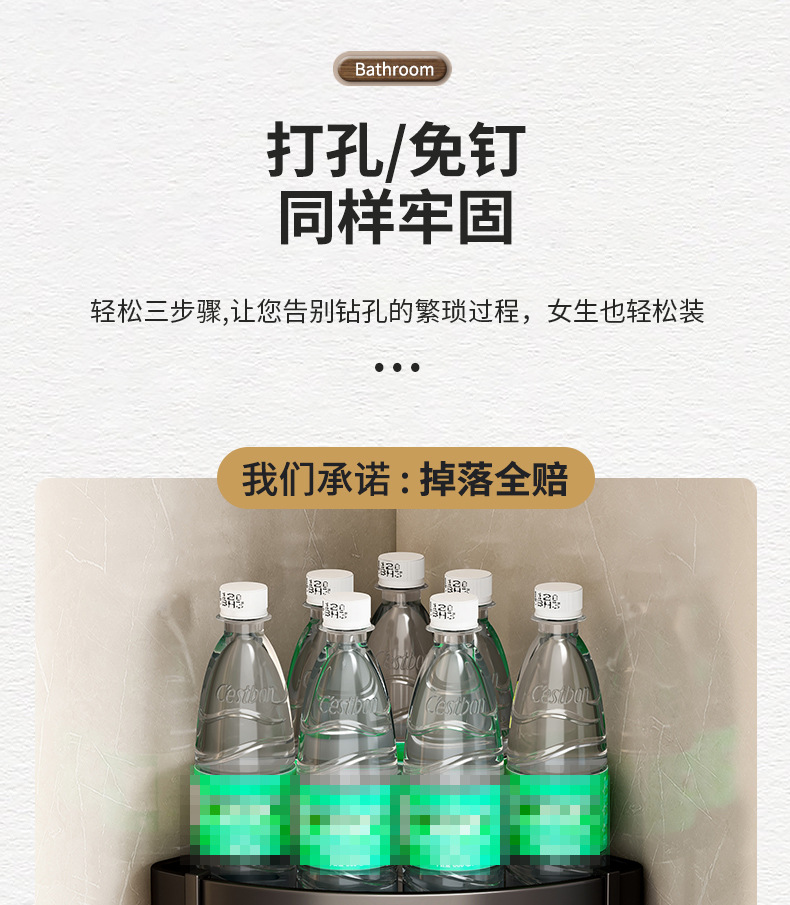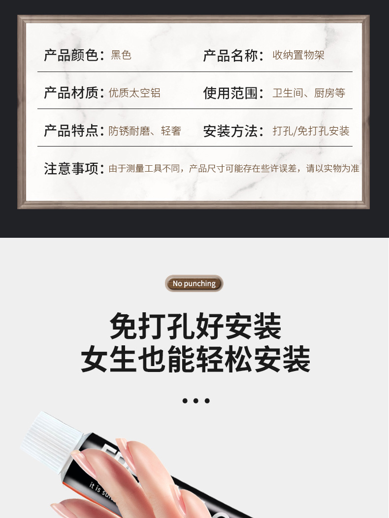 (1)此款可打孔/免打孔(两用)安装,螺丝和免钉胶都有配送的。