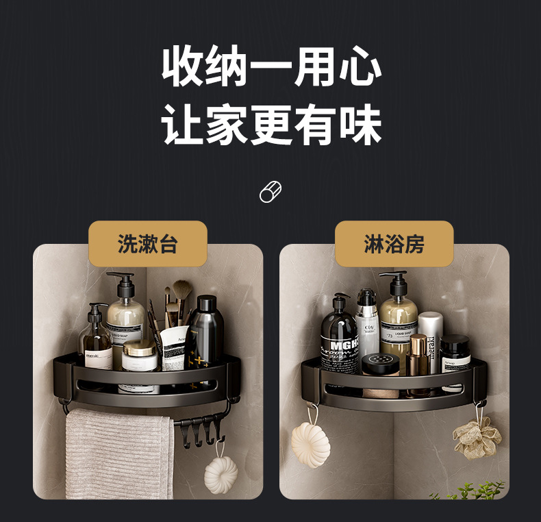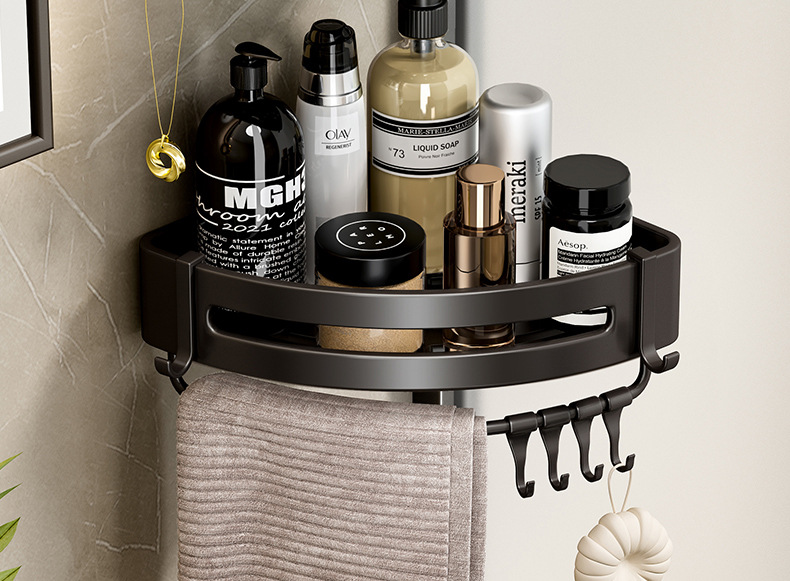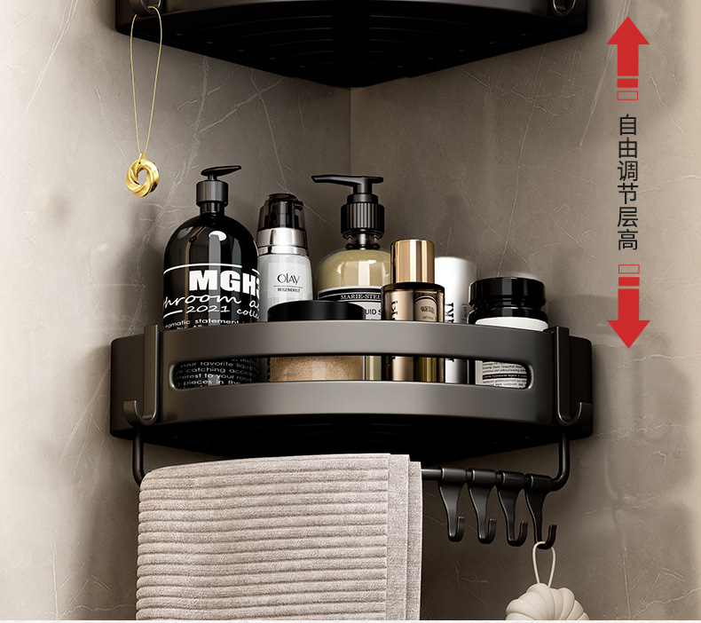 욕실 수납 랙 삼각형 벽걸이 벽 코너 비 펀치 공간 알루미늄 화장실 블랙 화장실 수납스토어 가기