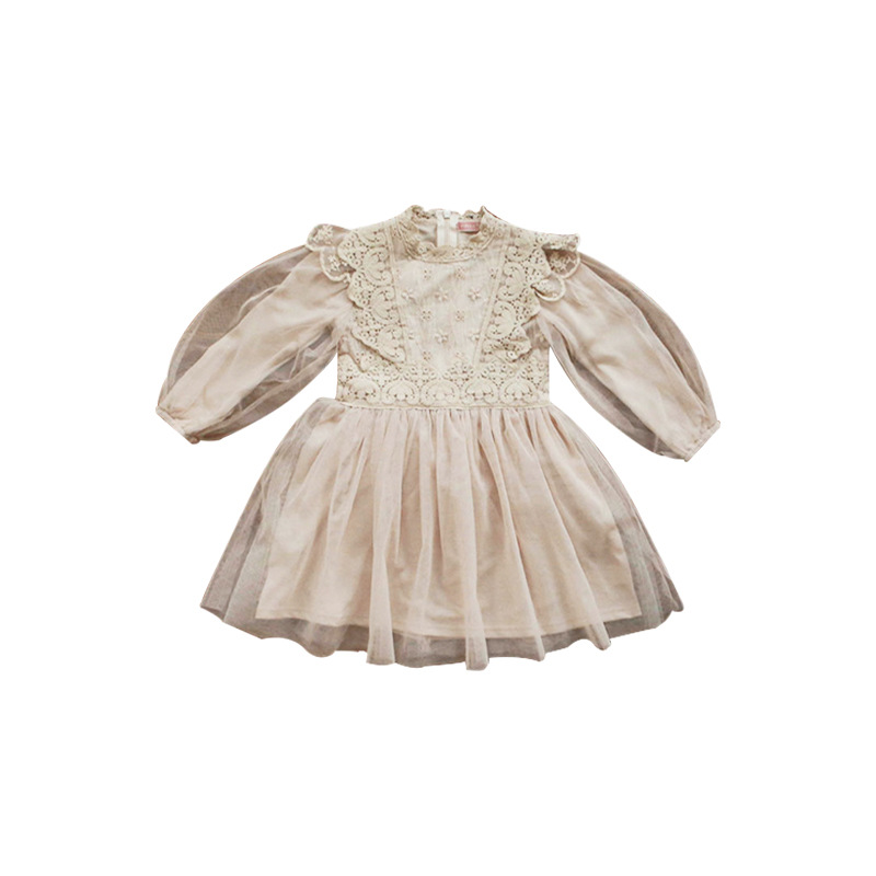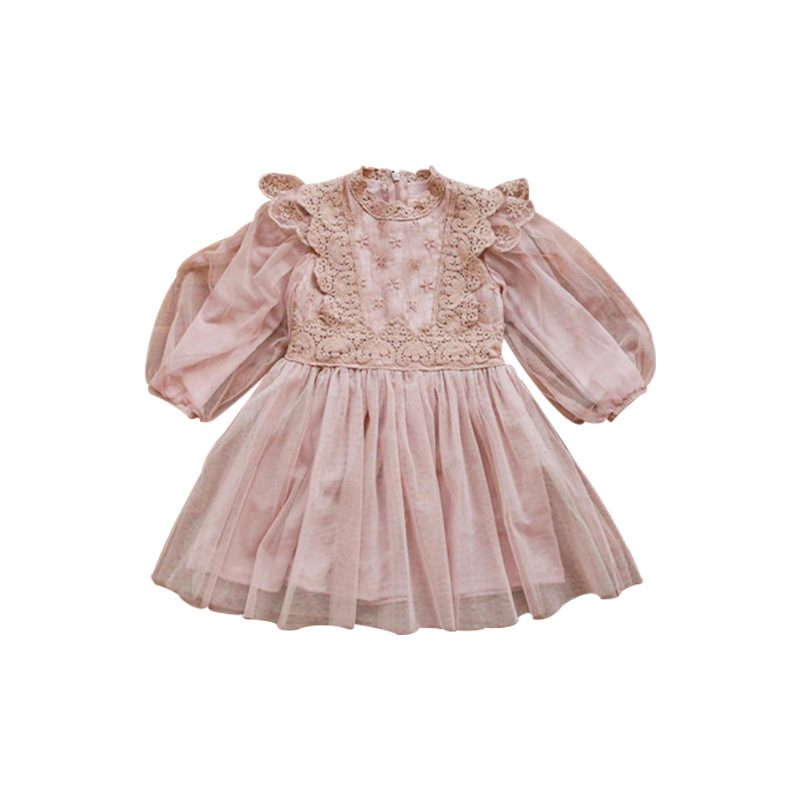 2025 가을 딸기 Shan 한국 아동복 어린이 소녀 프랑스 랜턴 슬리브 얇은 명주 그물 드레스 재고 있음스토어 가기
