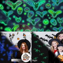 YGP055-057跨境万圣节骷髅人南瓜蝙蝠夜光贴节日装饰自粘荧光墙贴