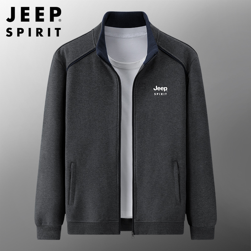JEEP SPIRIT 스웨터 남성 봄 가을 카디건 재킷 남성 자켓 캐주얼 스포츠 스탠드 칼라 의류 HL7019
