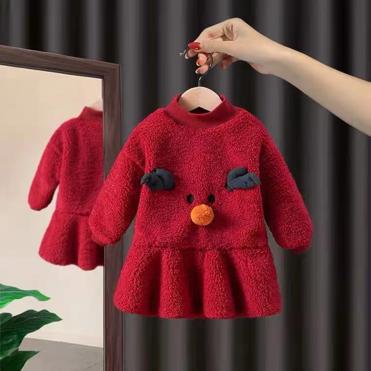 가을 겨울 새해 원피스 여아 기모 여아 한국식 공주 원피스 중소 아동용 스웨터 원피스