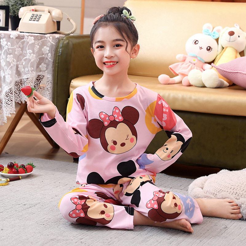 여아 잠옷 봄과 가을 면 어린이 긴팔 어린이 속옷 투피스 세트 만화 가정복