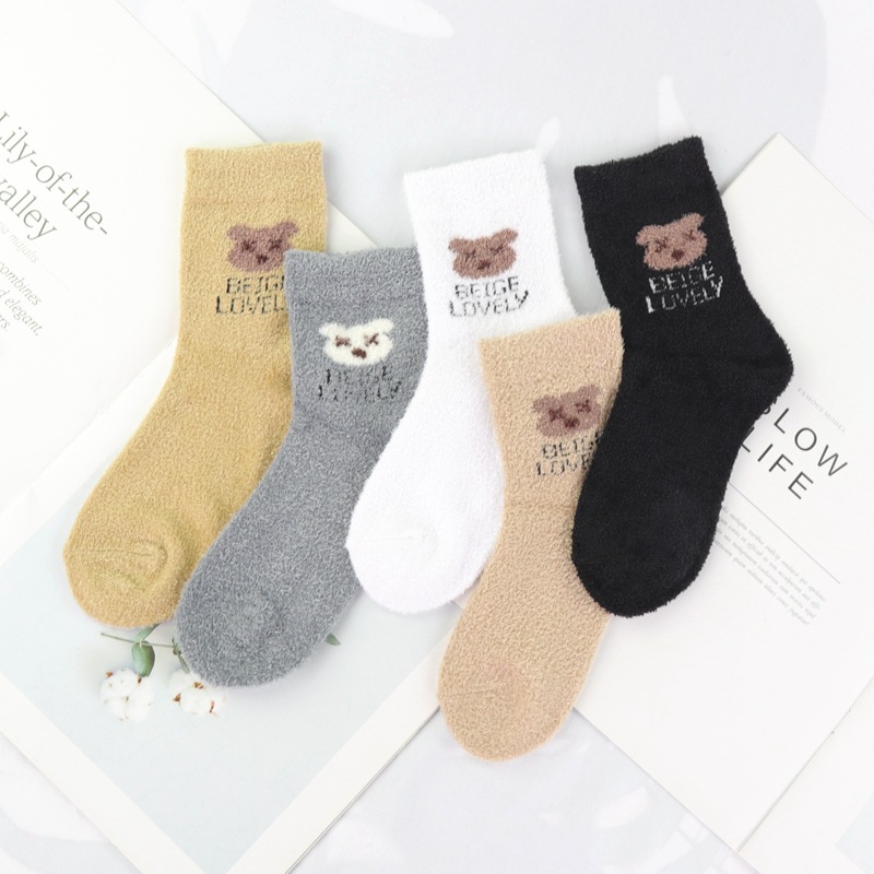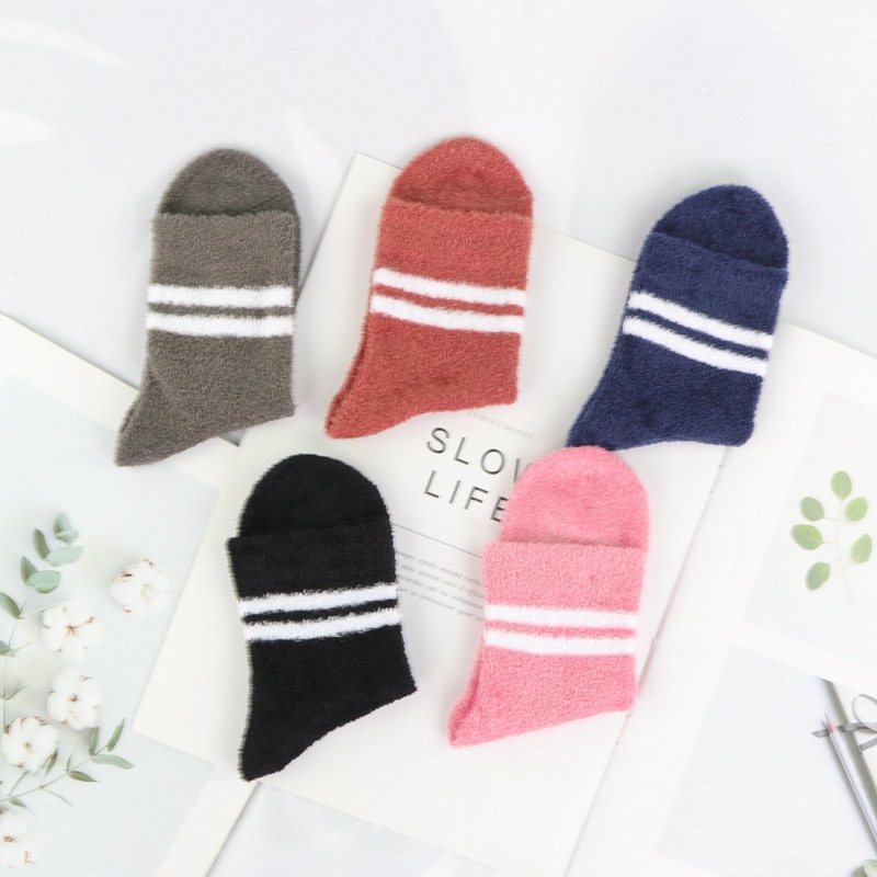 깃털 원사 어린이 양말 가을과 겨울 두꺼운 따뜻한 중간 튜브 양말 소년과 소녀 어린이 산호 양털 홈 바닥 양말스토어 가기